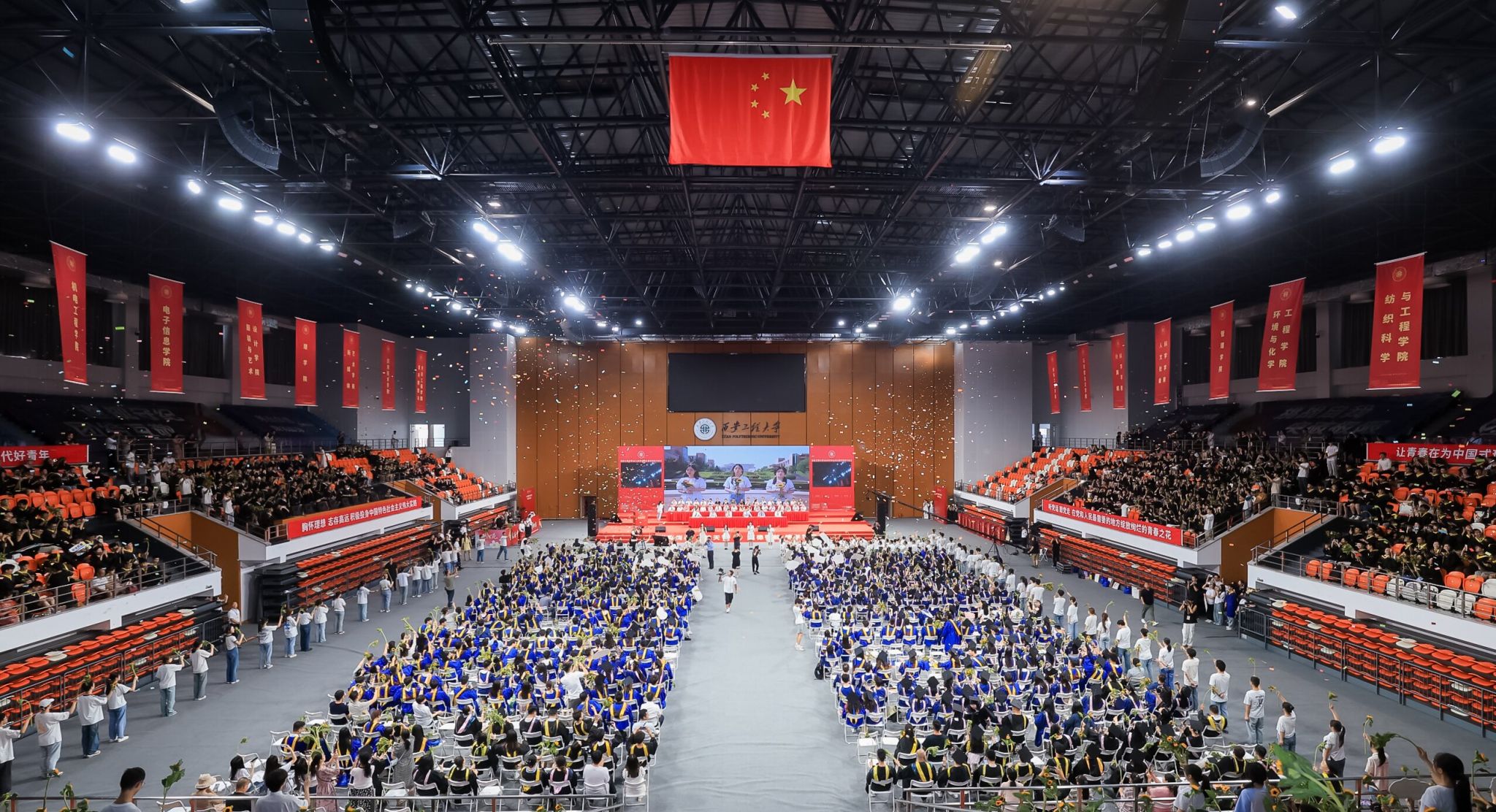 上午8时,毕业典礼在雄壮嘹亮的国歌声中拉开帷幕。王海燕作题为《逐光前行 奔赴山海》的致辞;辛永昌为2024届优秀毕业生和优秀毕业生干部代表颁奖;朱永民为2024届校友工作联络员代表颁发聘书;戴鸿宣读《关于表彰2024年姚穆院士奖学基金获奖学生的决定》和《关于表彰2024届优秀毕业生和优秀毕业生干部的决定》;全体校领导为姚穆奖学金获得者颁奖;校友代表黎东平受邀出席典礼;殷永建主持典礼。