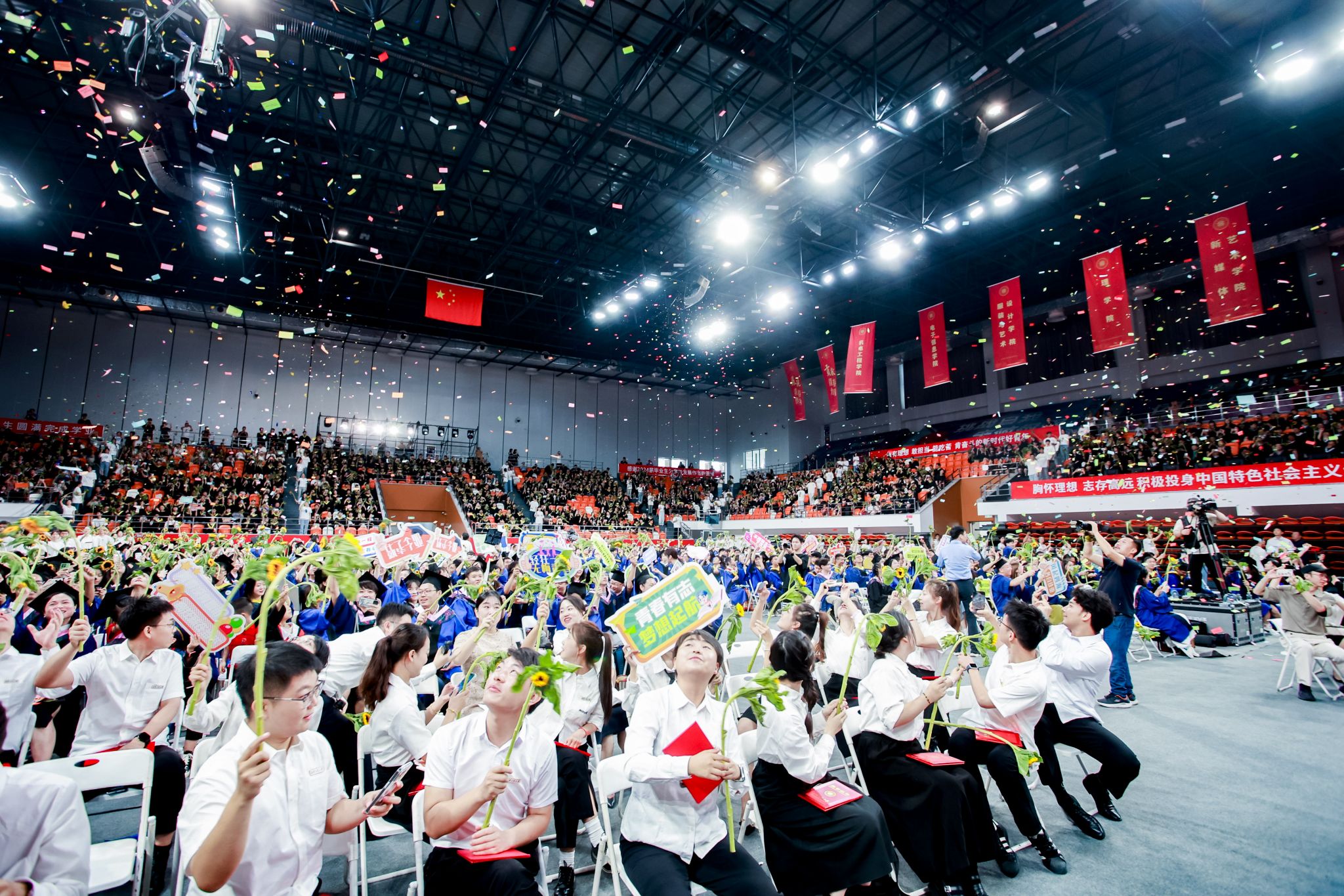 典礼开始前,毕业生代表献上了精彩的暖场表演。《我们一起闯》《像你这样的朋友》《最好的我们》《去明天》《入海》……宛转悠扬的旋律响起,再次唤起同学们大学时光的美好回忆,欢呼声与热烈的掌声将现场气氛瞬间点燃。