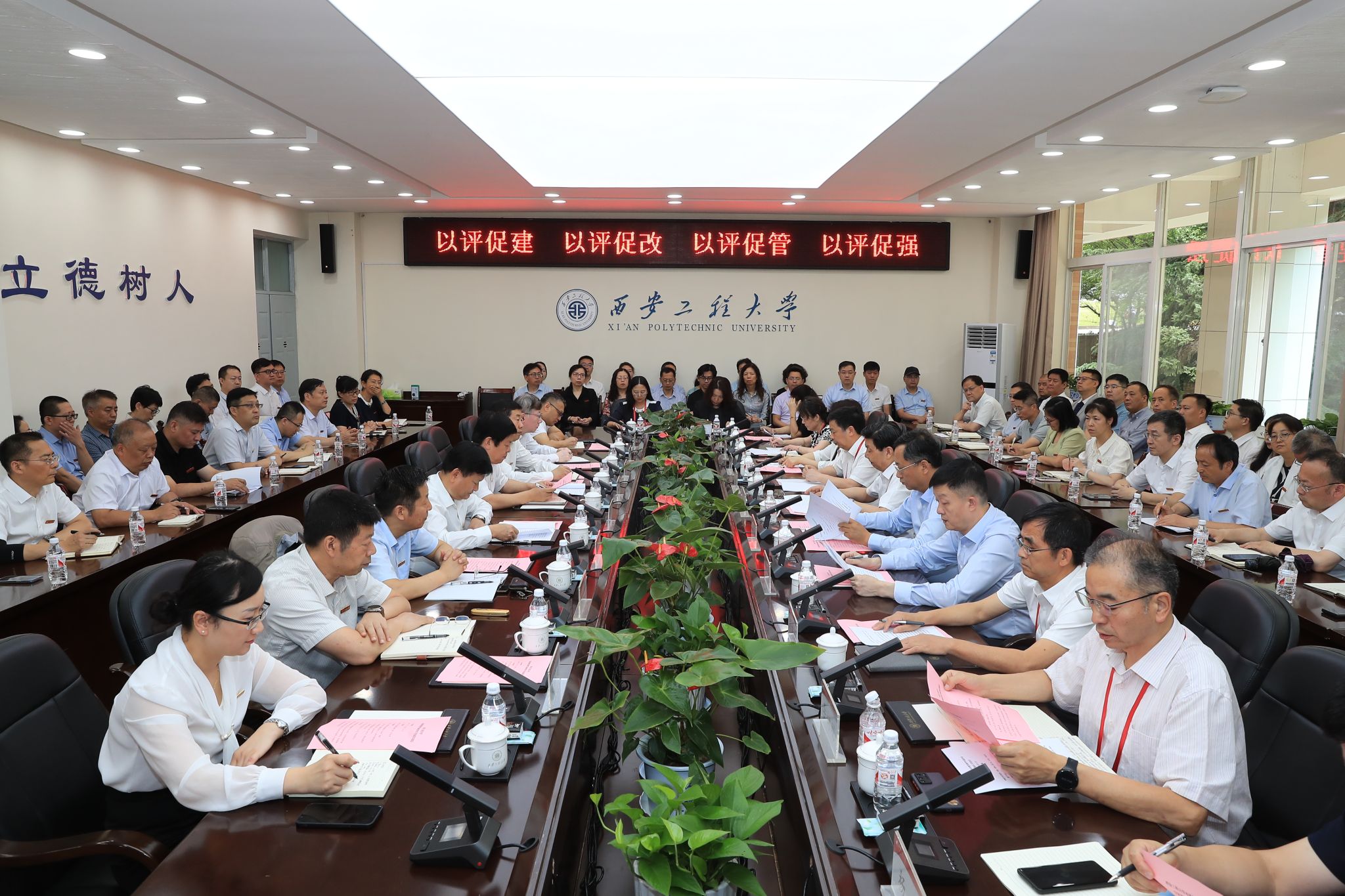 7月5日下午,beat365在临潼校区教学楼A座会议室召开本科教育教学审核评估专家意见交流会。审核评估专家组组长、大连理工大学原副校长李志义教授,副组长、江苏理工学院原党委书记朱林生教授及专家组全体成员陈革教授、王霞教授、姜明华教授、张美云教授、李树刚教授、李丽娟教授,省委教育工委、省教育厅二级巡视员高巍,高等教育处副处长杨鹏,中国西部教育评估中心副主任徐菲,学校全体在校校领导马万清、王海燕、辛永昌、殷永建、朱永民、戴鸿、夏蔡娟、杨建,各职能部门负责人、各学院(部)党政负责人及分管本科教学工作副院长、本科教学质量督导团团长等参加会议。会议由朱林生教授主持。