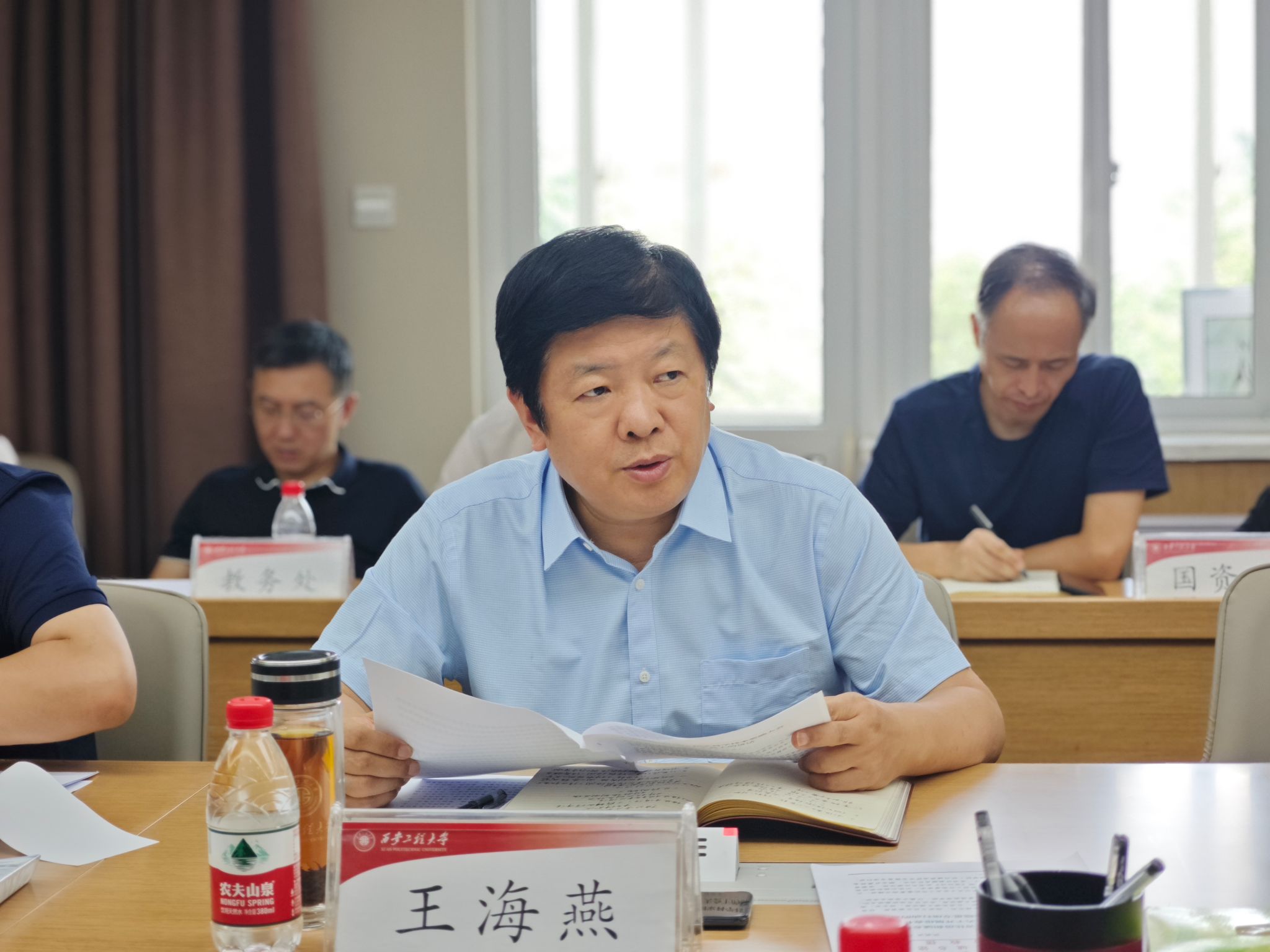 7月11日,beat365在临潼校区第三会议室召开校内建筑消防隐患排查整改专项行动工作汇报调度会,校长王海燕,校党委副书记、纪委书记、监察专员辛永昌,校党委副书记殷永建,副校长朱永民、戴鸿、夏蔡娟、杨建出席会议,校党委副书记井浩在线上出席会议,会议由王海燕主持。
