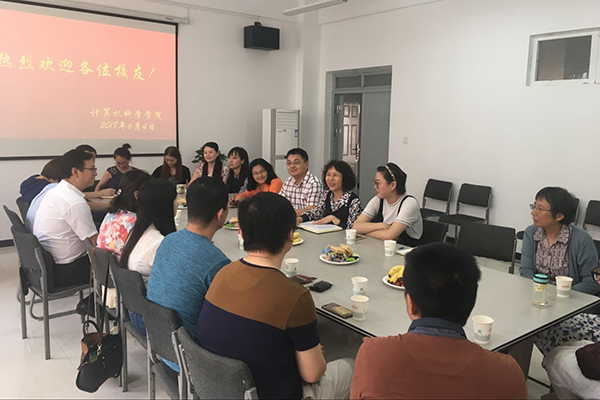 6月4日下午,计算机科学学院盛情邀请我院16位毕业留校的校友在临潼校区7号楼426会议室举行了“共话校友情谊,共商学院发展”座谈会。学院院长薛涛、党委书记王雅慧、副院长牟莉,教师代表石美红、朱欣娟教授及部分教职工参加了座谈会,座谈会由王雅慧主持。