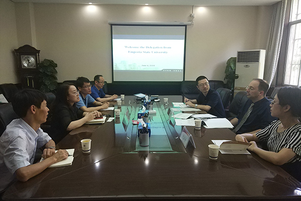 6月6日,美国恩波利亚州立大学数学系主任布莱恩•霍伦贝克(Brian Hollenbeck)、数学系教授石强、商学院教授范丽丹一行来访beat365,国际合作与交流处、理学院负责人和相关教师代表在金花校区第一会议室同外宾进行了会谈。