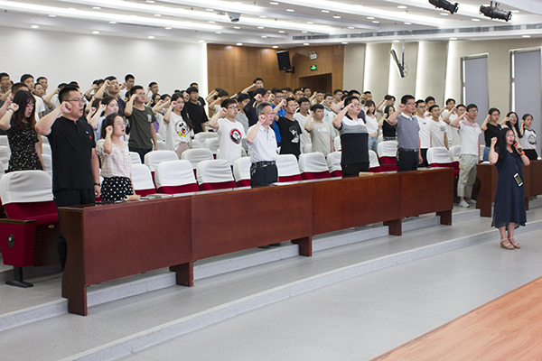 大会接下来进行集体宣誓,重温入党誓词仪式。全体毕业生党员首先观看了由入党誓词拍摄的视频《我宣誓》,视频中激情澎湃、振奋昂扬的画面及习近平总书记领誓入党誓词的原声,一次次鞭策、提醒着大家,提醒着在场的党员们要自觉履行党员的责任与义务、要主动肩负起新时代赋予我们每一个人的责任与使命!然后在李云红的带领下,全体毕业生党员面向党旗,举起右拳,重温入党誓词,表达自己为共产主义事业奋斗终身的理想和信念。
