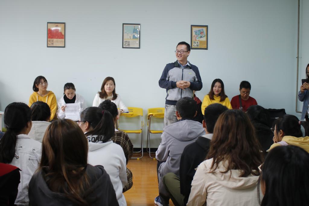 9月18日,屈展主持并开展了团体心理辅导观摩课培训。他以服装与艺术学院2019级广告1班本科新生为辅导对象,向新进辅导员展示了团体心理辅导的完整流程。在培训过程中,他按照破冰版块、互动版块、合作版块、思考版块的顺序带领学生分别进行4项活动,增进学生之间的友谊与班集体意识,加强了学生对团队合作的认识,引发了学生对个人成长的思考。同时也让通过观摩培训新进辅导员加深了对团体心理辅导理论的理解,使其更好地将理论与实践相结合。