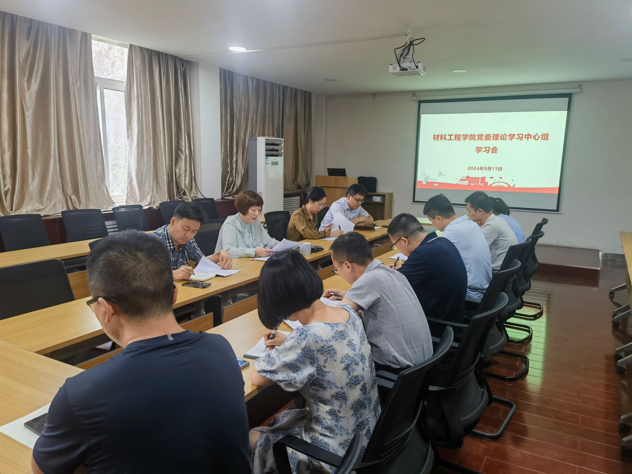 9月11日,材料工程学院党委理论学习中心组在学院215会议室召开学习会,专题学习党的二十届三中全会精神。学院党政领导班子成员、党委委员、各支部书记参加会议。会议由学院党委书记赵雪曼主持。