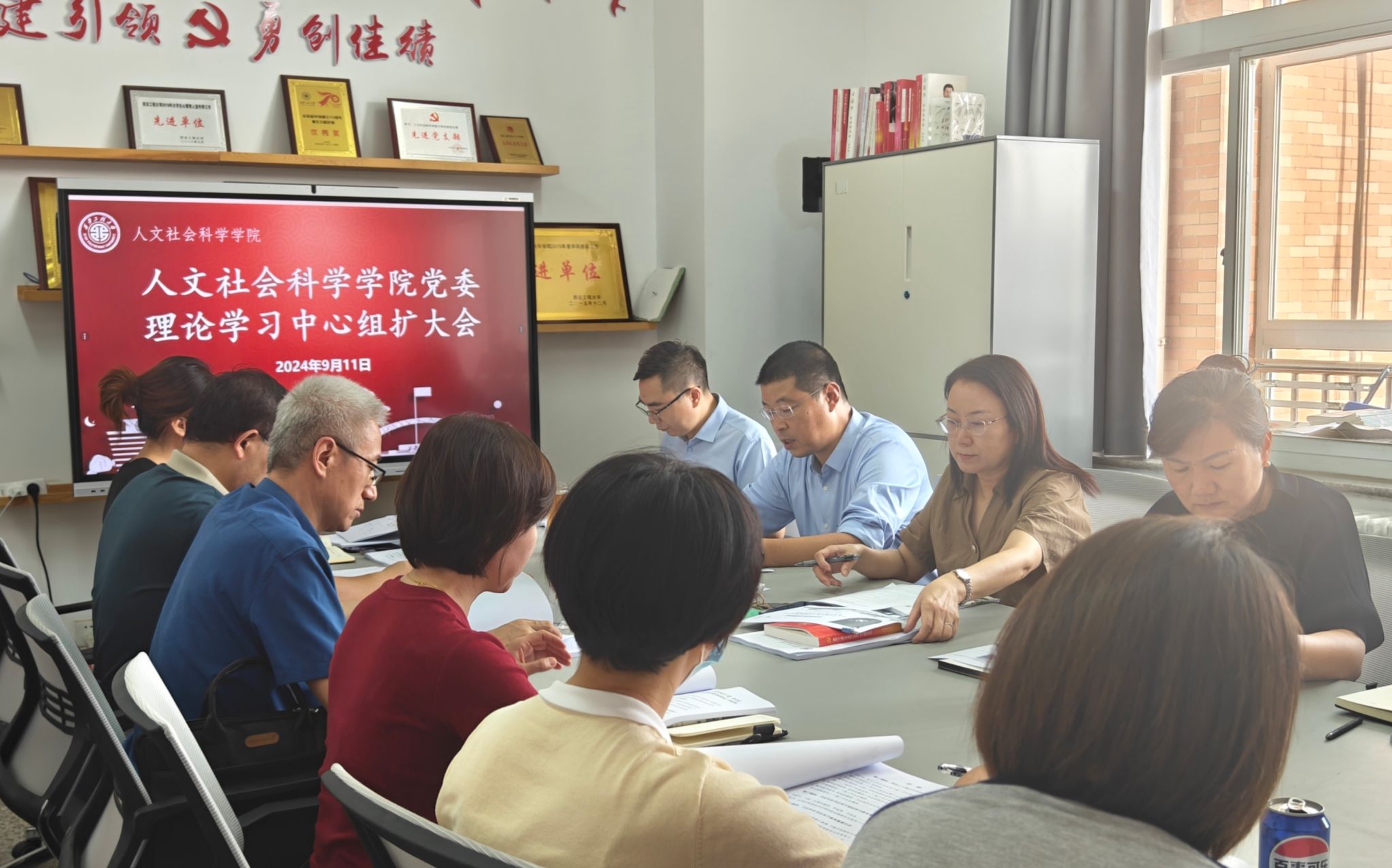 9月11日下午,人文社会科学学院党委理论学习中心组在人文楼516党建工作室召开扩大学习会,集体学习党的二十届三中全会精神,学院全体党政领导、党委委员、办公室主任、组织员、支部书记参加学习会。学习会由学院党委书记陈莉霞主持。