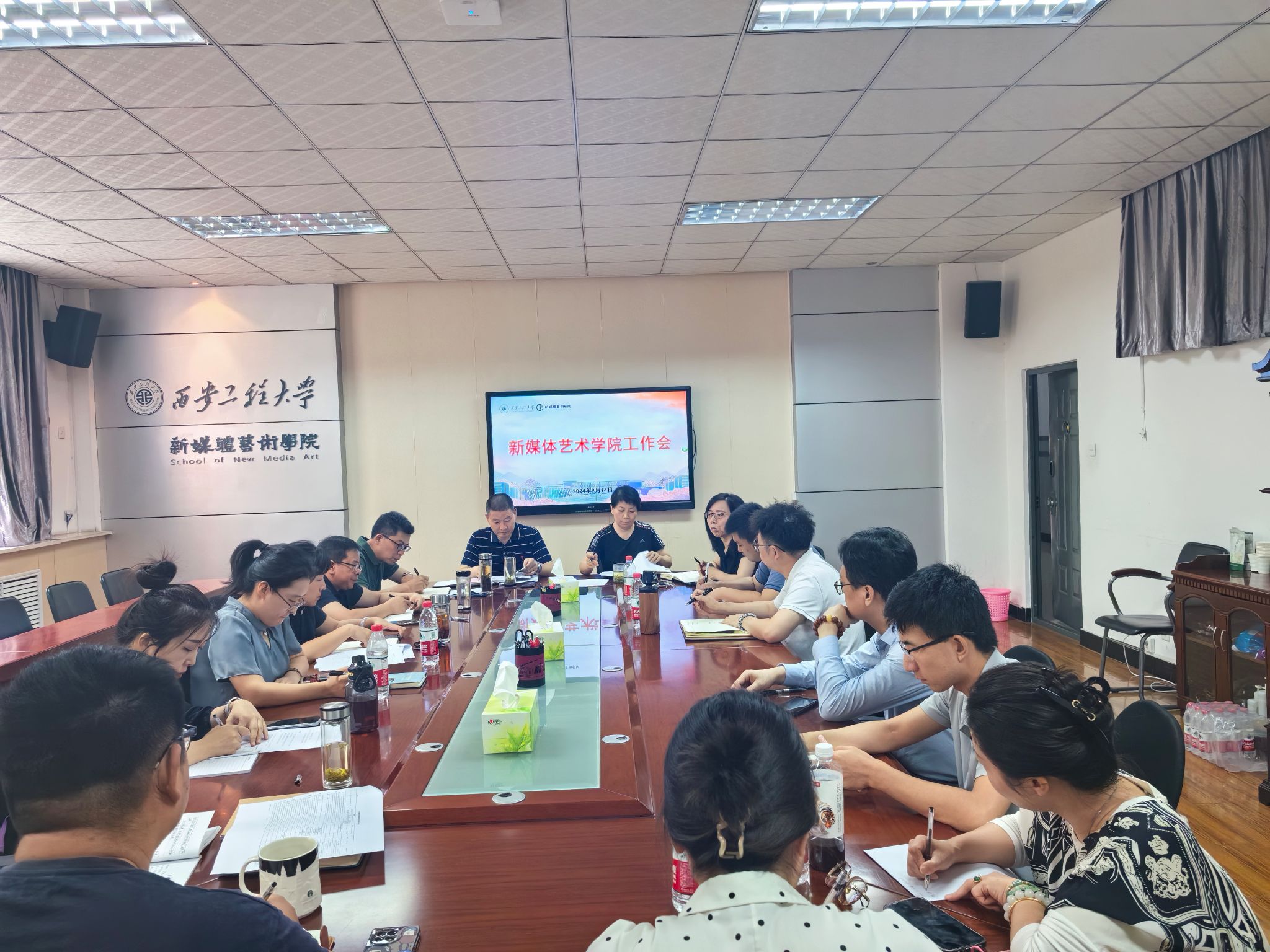9月14日上午,新媒体艺术学院在8-326会议室召开学院近期重要工作推进会。此次会议旨在全面梳理和推进学院各项工作,为本学期及未来发展奠定坚实基础。会议由学院副院长(主持工作)丛红艳主持,院领导班子成员、各系办中心正副主任、学院秘书参加。