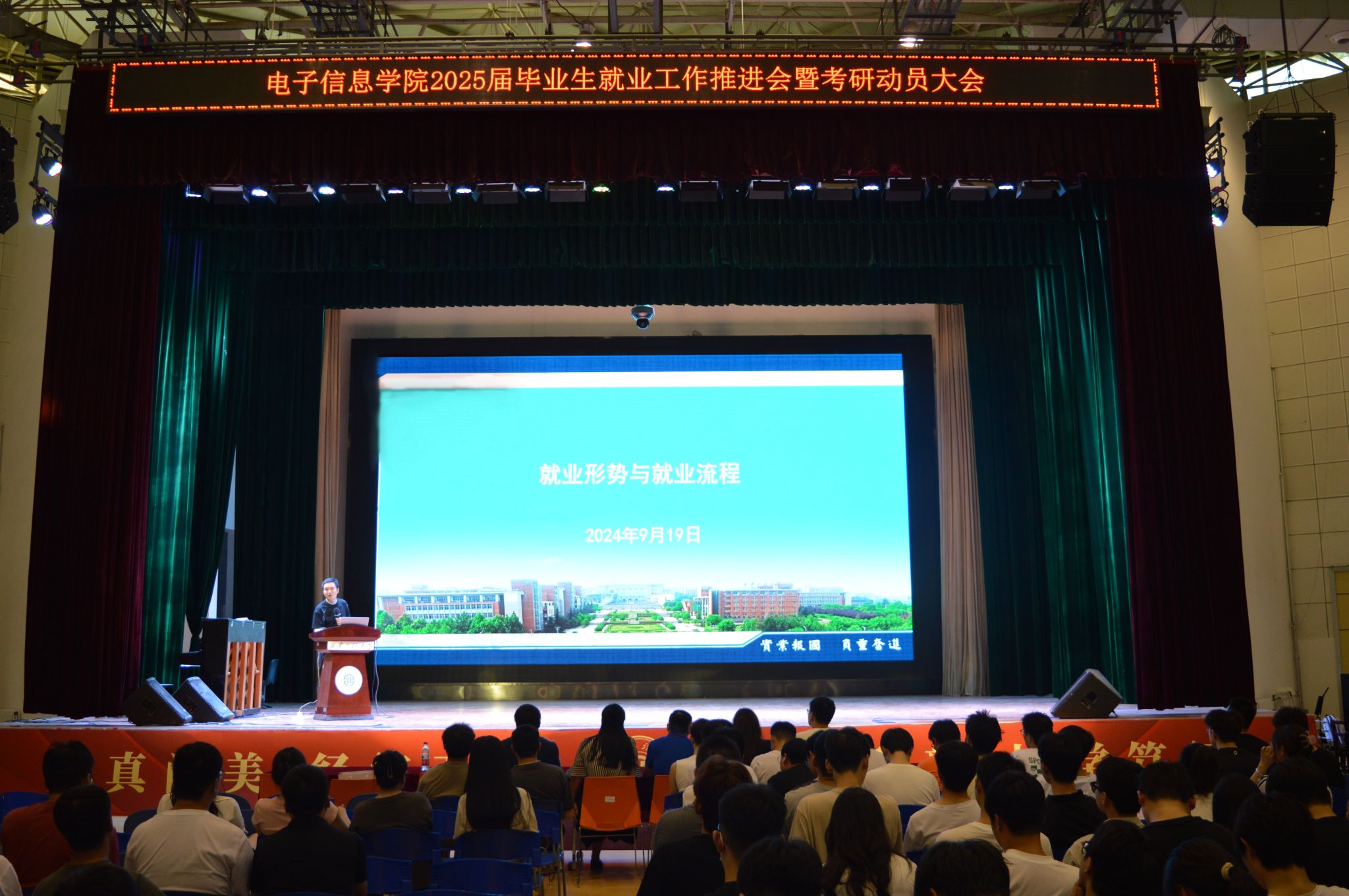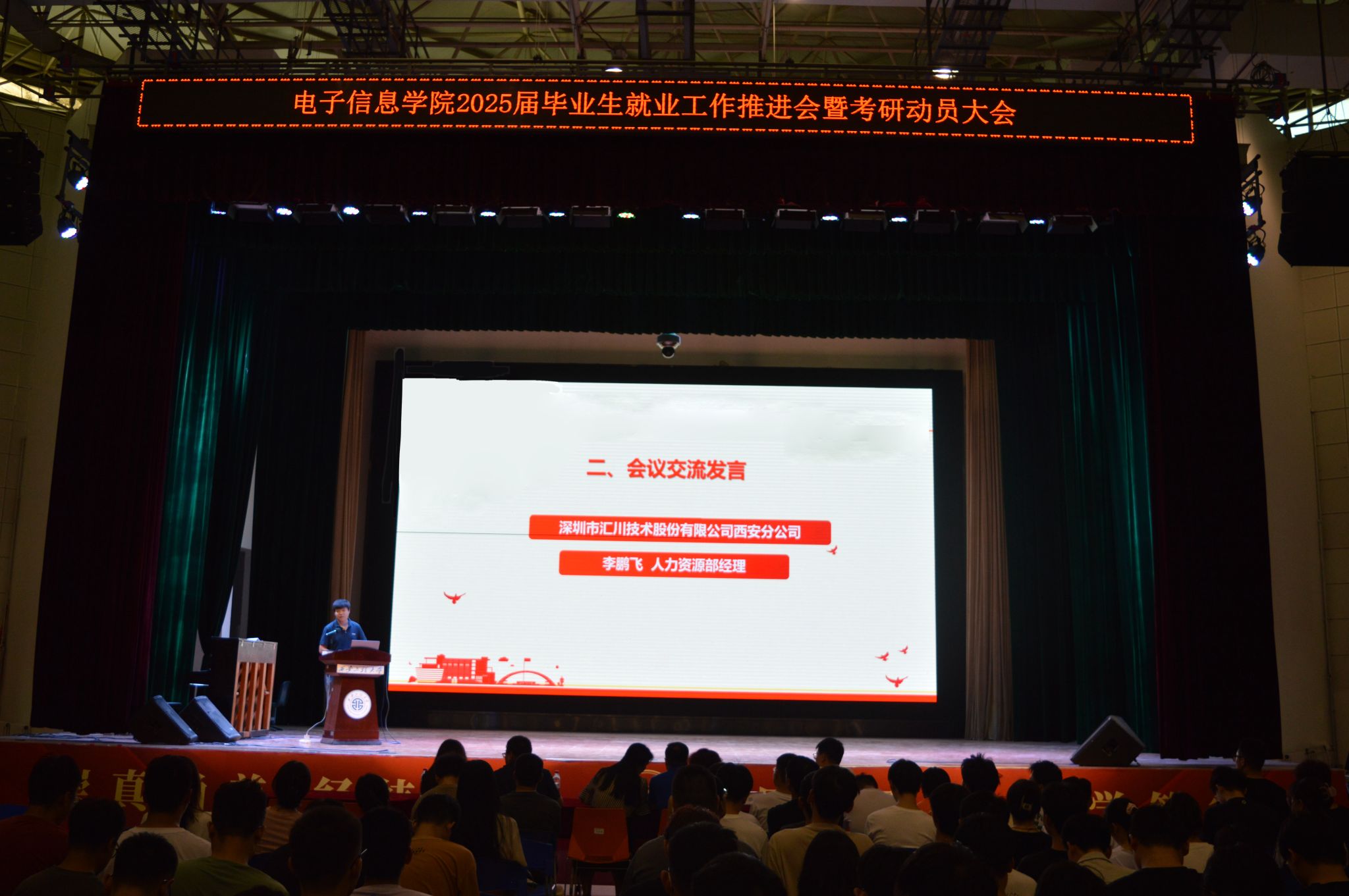 9月19日下午,电子信息学院在临潼校区大学生活动中心成功召开2025届毕业生就业工作推进会暨考研动员大会。beat365官方网站招生就业工作处副处长(主持工作)付刚,学院党委副书记周晓惠,学工办主任、2021级辅导员王德利,辅导员王家钰,及全体毕业生参加大会。并邀请了深圳市汇川技术股份有限公司西安分公司人力资源部经理李鹏飞,学院2024届校友、西安电子科技大学硕士研究生王毅卓参会。会议由学院就业工作辅导员黄木委主持。