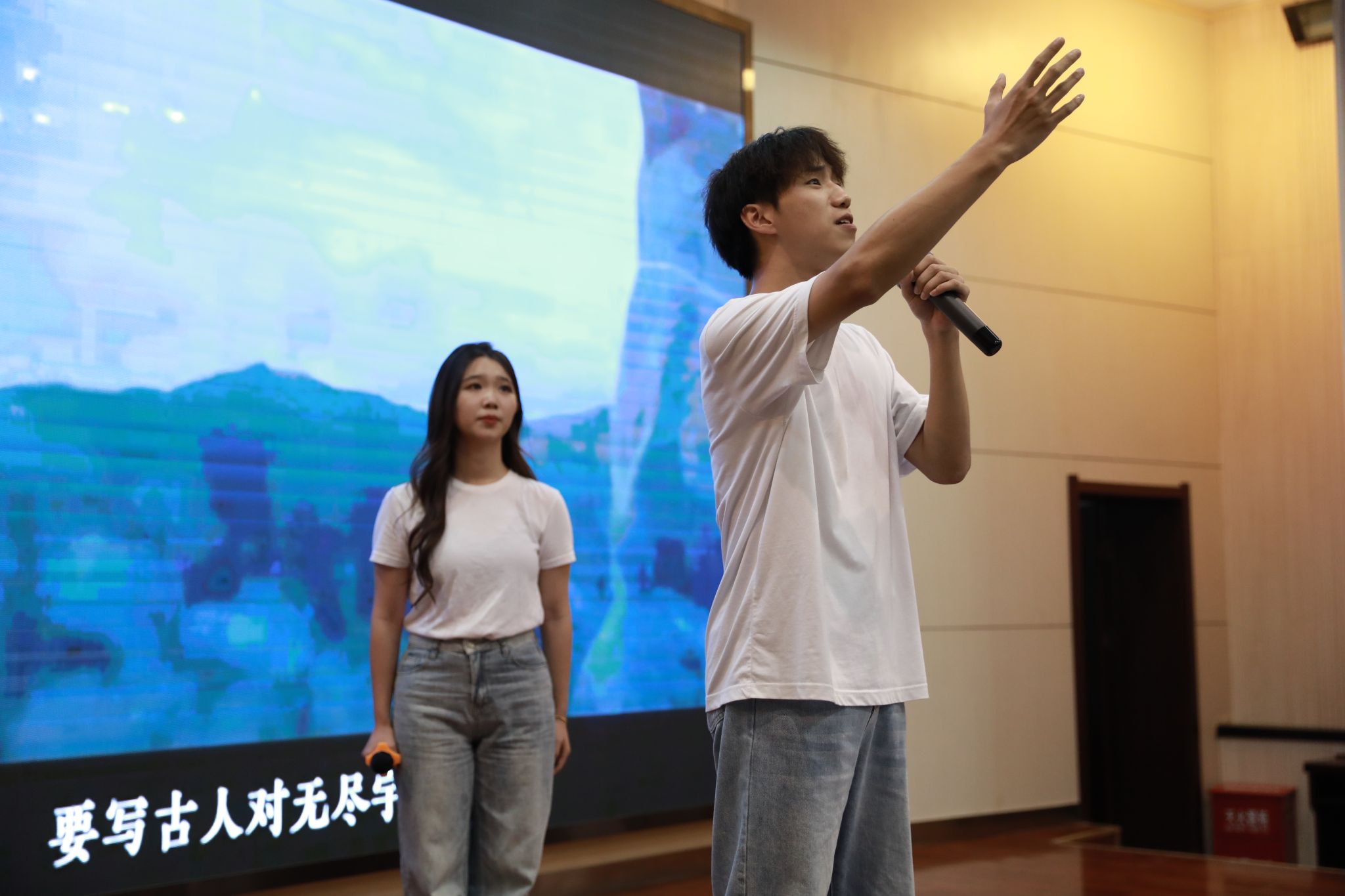 在“播音与主持专业获奖朗诵作品”展演活动中,同学们充分展现了普通话的魅力和力量,用朗诵的方式追溯历史长河、讴歌时代新篇,激发内心深处的民族自豪感与爱国情怀。《相机上的红丝绳》《永远飘扬的红头巾》《今夜星光灿烂》等作品展现了同学们扎实的专业功底和饱满的热情,为传播中华文化、讲好中国故事贡献自己的力量。