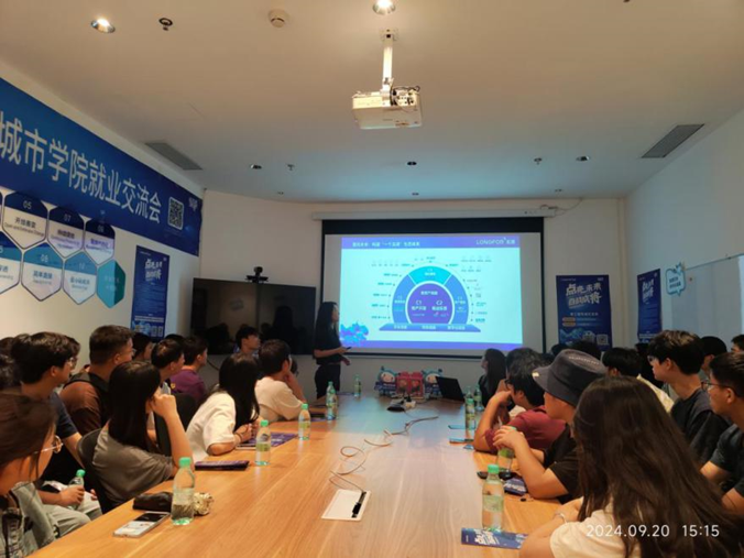 在交流会上,香醍天街商服工程职能负责人(2020级校友)肖闯结合职场经历和体验分享了自己的成长与收获。西北地区商服发展部负责人王智超和西北地区人力职能负责人王灏熹分别就企业人才培养计划和成长路径以及“点将引才”计划向同学们作了详细介绍。同学们纷纷就自己关心的问题进行积极咨询。最后,龙湖集团对31名提交简历的同学进行了分组面试。