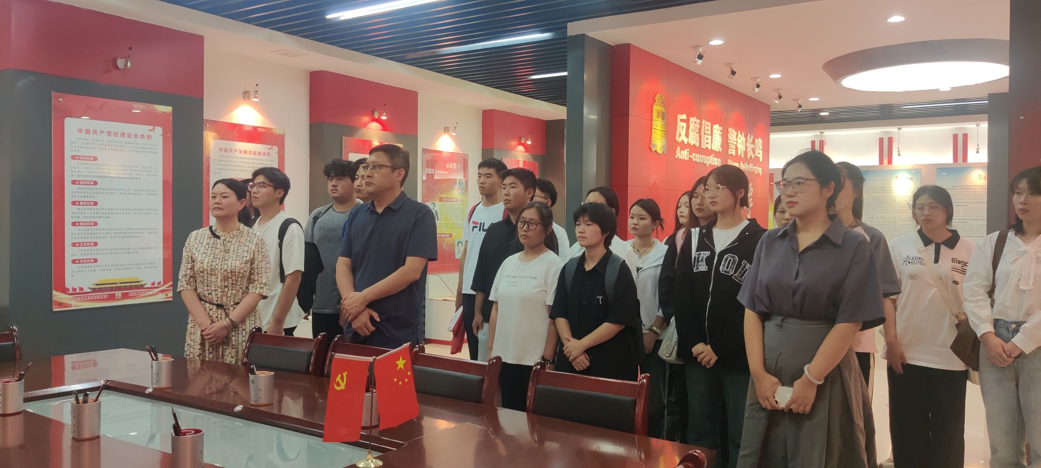 为进一步弘扬廉洁文化,增强大学生的廉洁自律意识,助力校园廉洁文化建设,9月24日下午,服装与艺术设计学院院党委书记苏博、院党委副书记马磊、副处级组织员吴艳杰、2024级新生辅导员王盼、姜萌,带领本科生服工党支部参观校廉政教育基地,开展“清风扬正气廉洁守初心”主题党日活动。