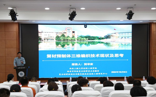 在首场专业报告环节中,院长贺辛亥教授和材料创新团队负责人王军副教授分别作题为《复材预制体三维编织技术现状及思考》和《新型电工合金的制备及电弧侵蚀机理研究》的报告。他们从团队目前开展的纺织复合材料和金属基功能材料在各领域的发展与应用,对本科学生在专业认知的需求方面进行了深入浅出的专业前沿报告,提升了学生的专业认同感和获得感。