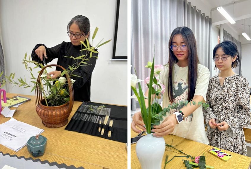 《盆景与插花艺术》是风景园林专业本科四年级开设的一门理论与实践结合的应用型课程,主要讲授盆景与插花基本理论和基本技能,内容丰富,涵盖面广,课程以提高学生对盆景和花卉艺术品的创作及应用能力,注重基本功的训练,侧重对学生创新意识、创新能力的培养。课程通过植物造型的构图设计、插花艺术的色彩搭配,让同学们熟练掌握东方式插花、西方式插花、现代自由式插花、艺术插花创作、节庆礼仪插花以及插花在室内空间环境中的应用等内容,课程聚焦培养学生解决问题的思路和方法,提高学生对花卉艺术品的鉴赏能力与艺术审美能力。