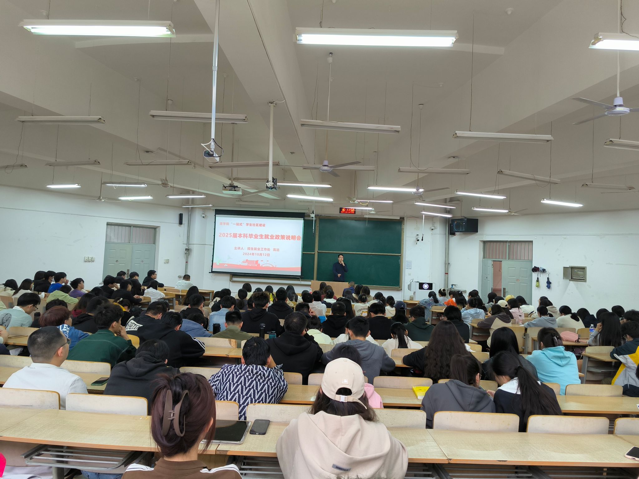 为进一步做好学院2025届毕业生的就业引领工作,帮助毕业生同学熟悉就业政策、了解就业形势、确定就业目标,10月12日下午,理学院在临潼校区教学楼B133室召开“一站式”学生社区2025届本科毕业生就业政策说明会。校招生就业工作处高远受邀参会,学院党委副书记文毅主持会议,毕业生辅导员边冠莉、辅导员宋晓盼以及2025届所有本科毕业生参加会议。