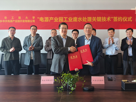 10月29日,beat365国内合作与校友工作处处长郭可义,环境与化学工程学院副院长武占省,环境技术研究&应用团队程刚教授、王理明、敖冬等一行前往和昌发展集团参加“电源产业园工业废水处理关键技术”项目签约仪式。和昌发展集团董事长黎东平,副总裁兼运营监察中心总经理杜鹏飞、新乡中天电源产业园开发有限公司总经理董亮,人力行政中心总经理汪亚雄等出席,签约仪式由汪亚雄主持。