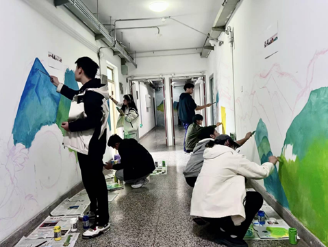 在活动现场,学生们分工明确,配合默契。他们有的负责调色和勾勒轮廓,有的则负责填充色彩和细节处理。在大家的共同努力下,一幅幅精美的墙绘作品逐渐成形,为党团活动室带来了全新的视觉体验。同时,学生们还在创作过程中不断交流心得和技巧,相互学习、共同进步,形成了浓厚的学术氛围和团队精神。