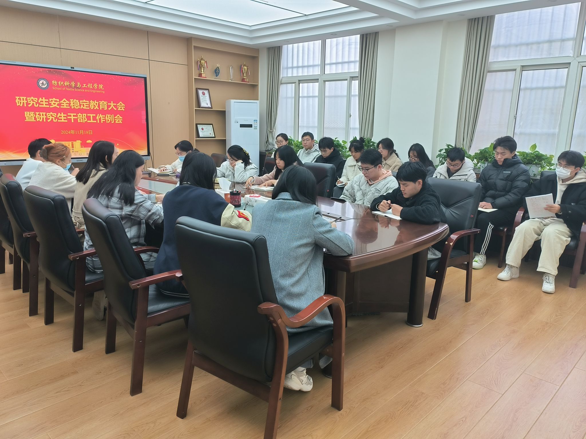 此次会议有利于提升学院全体研究生的安全意识和责任感,为构建和谐校园环境奠定了良好工作基础。后续学院将继续把研究生安全教育作为日常工作的重点,常抓不懈,防患未然,对于苗头性问题,做到早发现、早预防、早报告、早处置,切实维护校园安全稳定。
