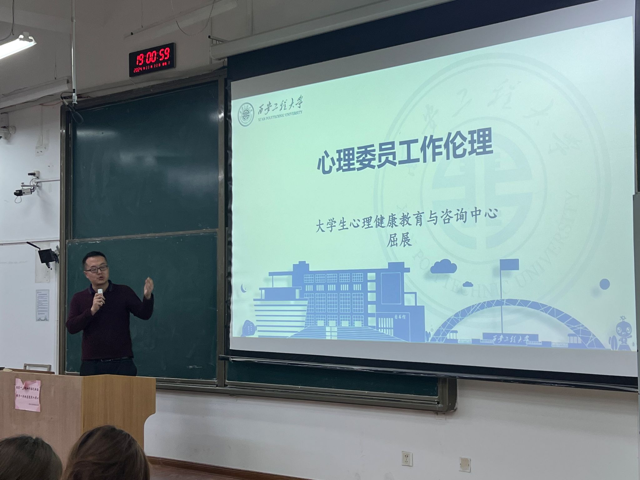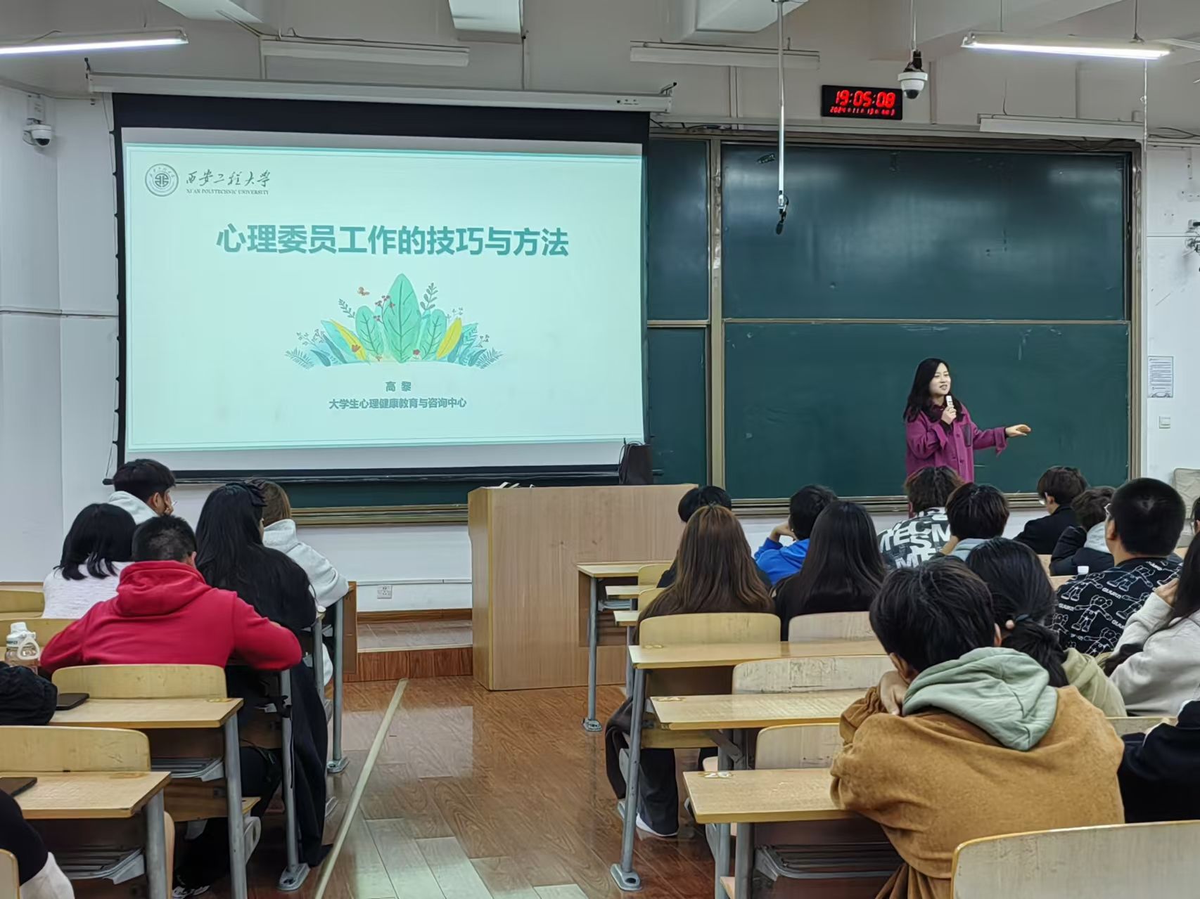 本期培训分为四讲,分别由大学生心理健康教育与咨询中心四位老师从不同角度作专题分享。其中,刘蓉老师作了题为《做好班级“知心人”》的分享、高黎老师从《心理委员工作的技巧与方法》方向进行分享、屈展老师分享了《心理委员的工作伦理》、马海蓉老师就《心理危机的识别与干预》内容进行了分享。具体内容涉及心理委员工作制度、心理健康基本知识与理论、朋辈咨询工作技术、心理委员的伦理守则、心理委员助人技能培养、心理委员个人成长、心理活动组织七个方面。本次培训以科普视频、案例分析、投射测评、活动体验等多种方式分析了当下大学生常见心理问题以及应对方法,生动地为班级心理委员展示如何在学生群体中高效开展心理健康工作。