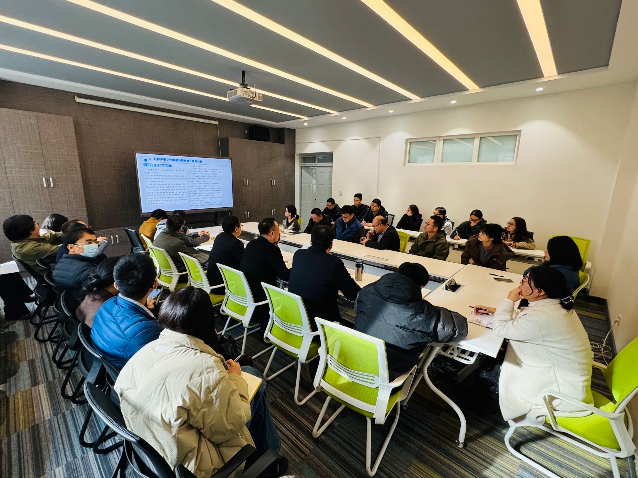 张凯兵在会上详细解读了职称评审政策,并就职称晋升条件进行了说明。他还分享了中青年博士人才队伍建设的成绩,以及2024年度考核办法的具体落实情况。对于引进人才入校任务的完成情况,他也作了总结汇报。张凯兵深入分析了当前学院在人才建设方面面临的机遇与挑战,鼓励青年教师将个人职业规划与学院发展目标紧密结合,明确自身定位和发展路径,以更好地服务于学科建设和专业发展。