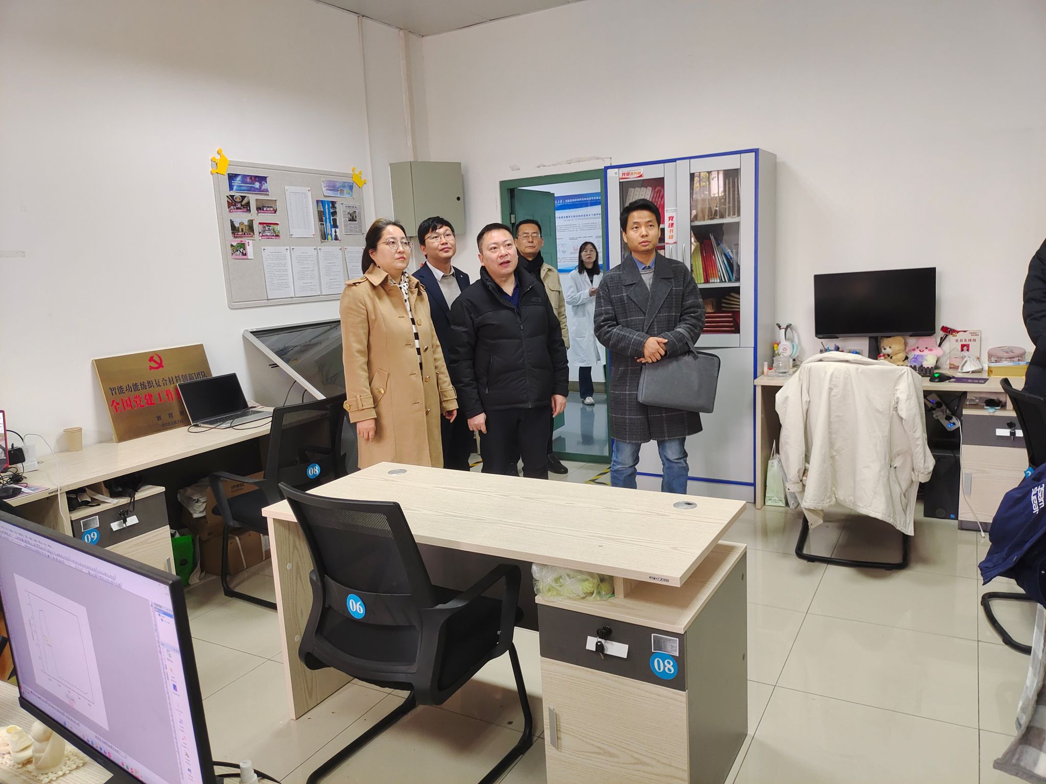 12月5日上午,陕西省教科文卫体工会对beat365申报创建的职工创新工作室进行检查指导。省教科文卫体工会副主席夏明文、三级主任科员钟振宇参加了检查,beat365校工会常务副主席张慧、纺织科学与工程学院党委书记李伟、科技研究院院长樊威及职工创新工作室相关人员陪同检查。