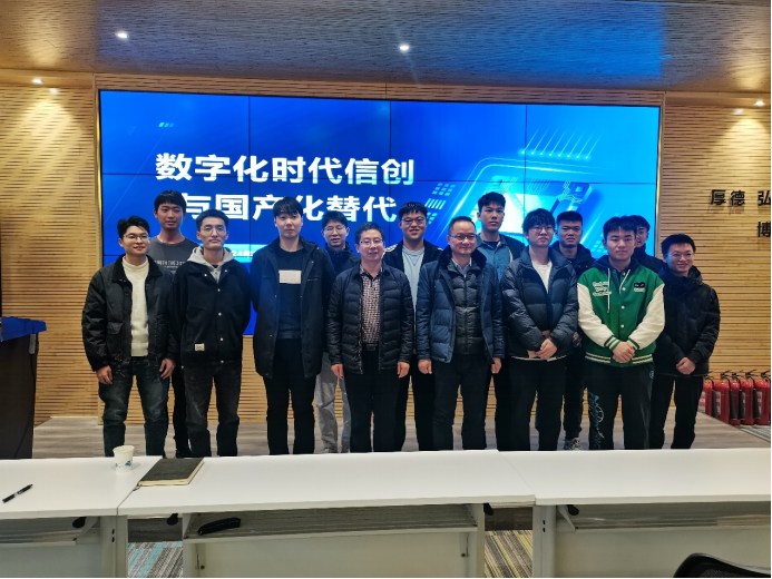 报告会开始,陈新江以汽车行业的重大变革为切入点,引出了当今世界的数字化时代与信创背景,并通过“三新一高”(新技术、新业态、新模式和高质量发展)强调高质量发展是新时代发展的必然趋势,发展新质生产力的关键在于创新。随后,陈新江介绍了我国信创与国产化替代任务所面临的机遇与挑战,指出加强核心技术研发、突破关键领域的“卡脖子”技术,是构建未来新产业体系的基础。接着,陈新江结合信息产业硬件基础设施、基础软件开发、芯片与处理器以及操作系统等国产化替代的典型案例,深入剖析了我国在人工智能、大数据、云计算等领域推动信息产业革新的信创技术。他鼓励广大研究生在数字化与智能化时代的背景下,顺应时代发展需求,将国家发展与个人成长紧密结合,培养数字化思维,提升数字化能力,把握信创时代发展带来的新机遇,为未来的科技创新和产业发展贡献力量。