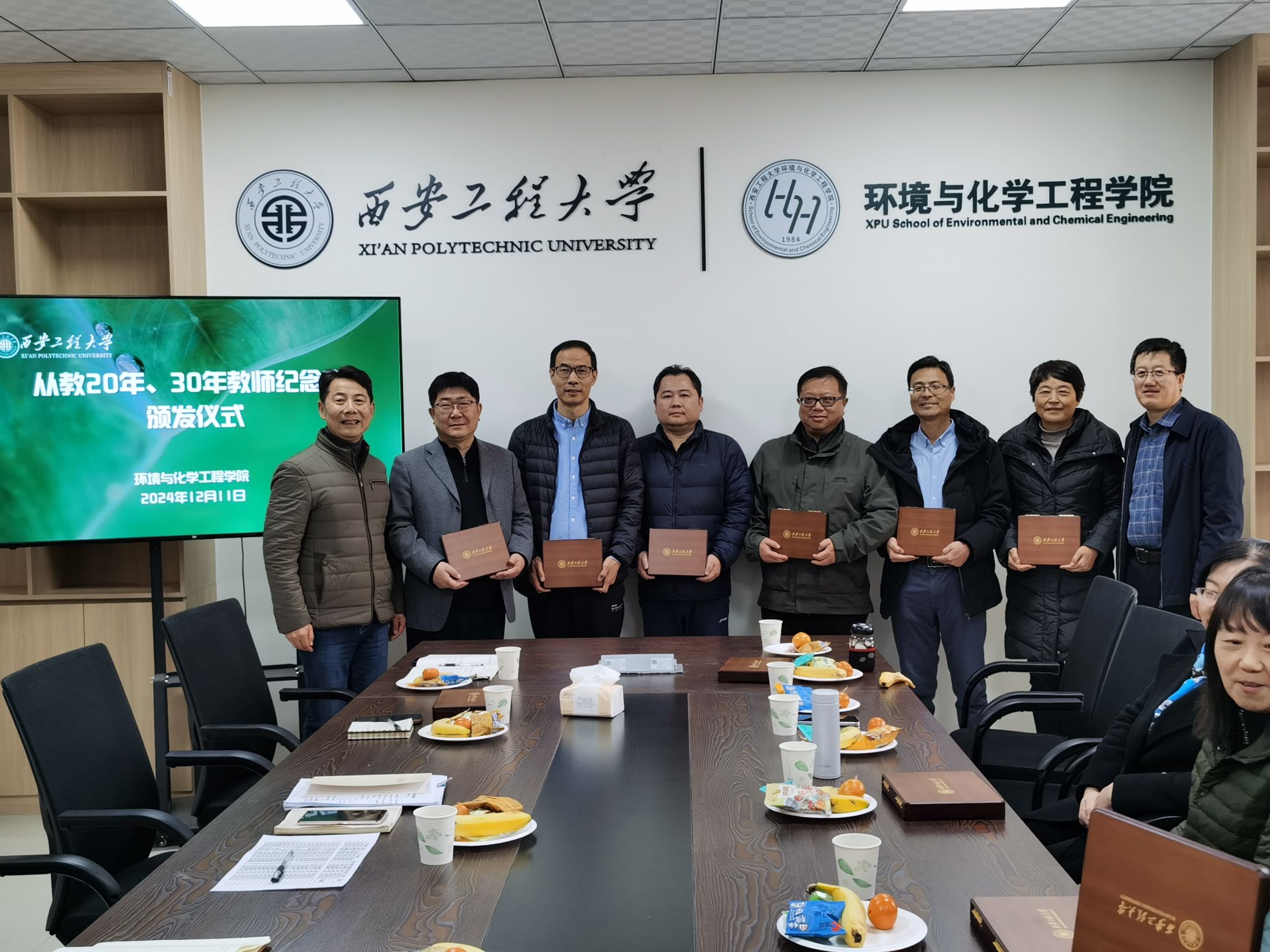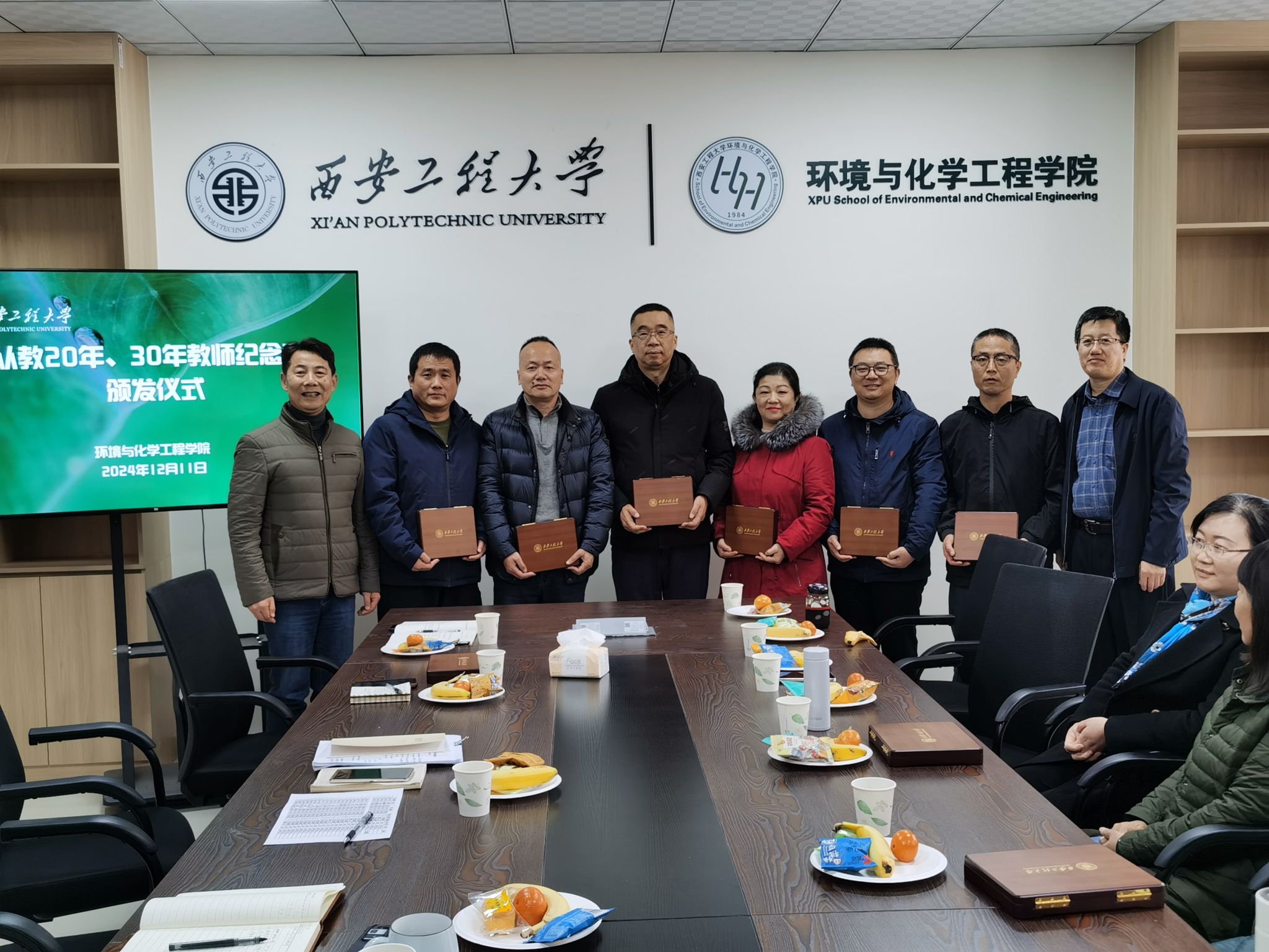 12月11日,环境与化学工程学院在236会议室举行2024年退休教师荣休会暨20/30年从教纪念章颁发仪式。学院党委书记胡西民、副院长武占省、党委副书记林定武、副院长常薇、工会主席王理明、从教20年、30年教师和青年教师代表参加了此次活动。