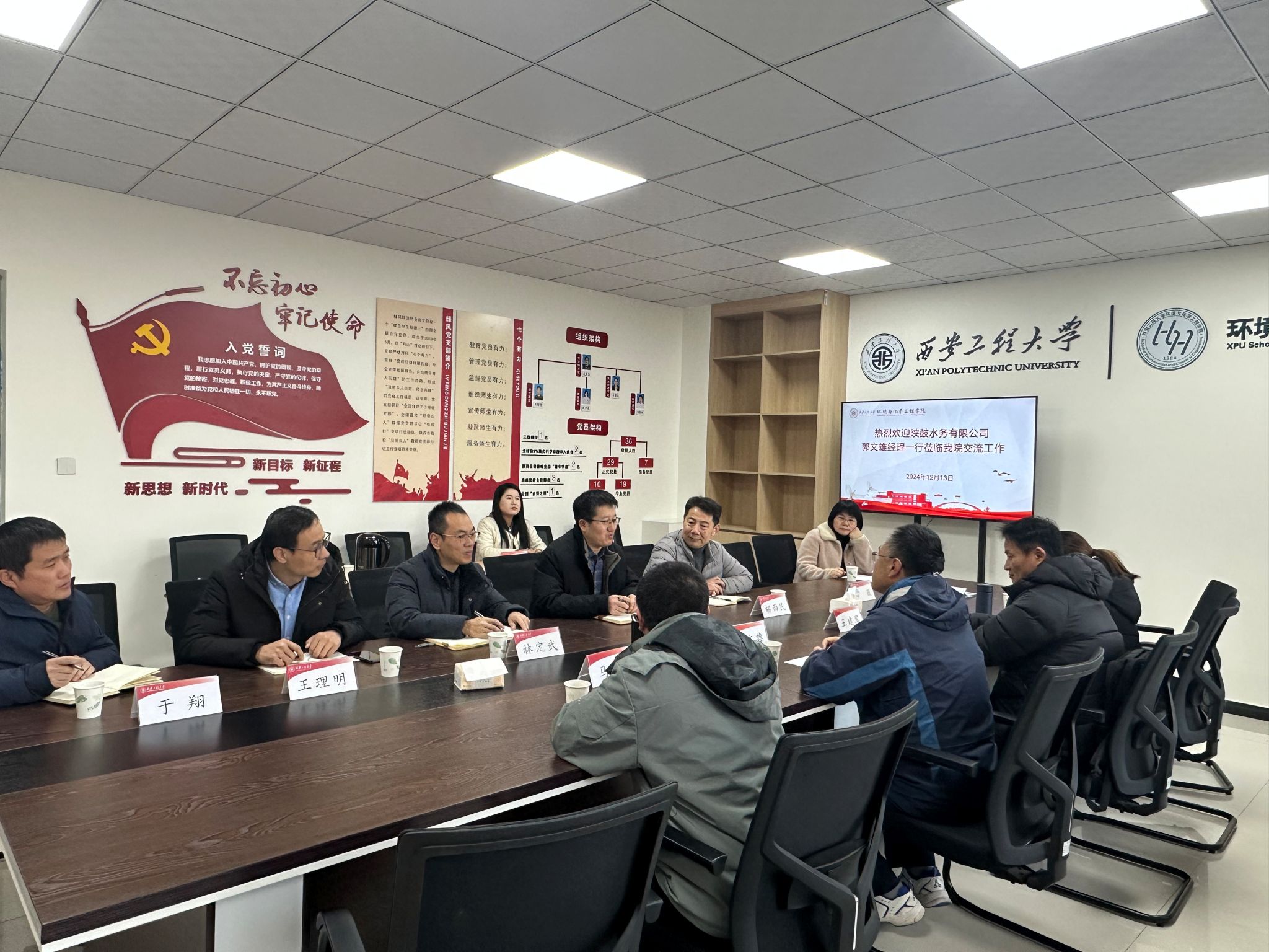 12月13日上午,陕西鼓风机(集团)有限公司水务分公司总经理郭文雄、总工程师王建军一行4人应邀来环境与化学工程学院开展产学研交流座谈会。学院党委书记胡西民、副院长武占省、副书记林定武、环工系主任李茹、副主任王理明等学院领导及教师出席了此次交流活动。