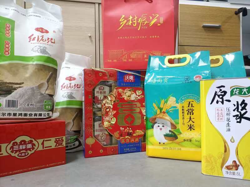 双节福利,祝福满满。本次元旦、春节“双节”福利品由2袋大米、2袋面粉、1桶花生油、1盒坚果礼盒、1盒瓜子礼盒和1袋扶贫礼包组成。一份份沉甸甸的礼盒,寄托着学校对广大教职工的关心关爱和深切祝福。