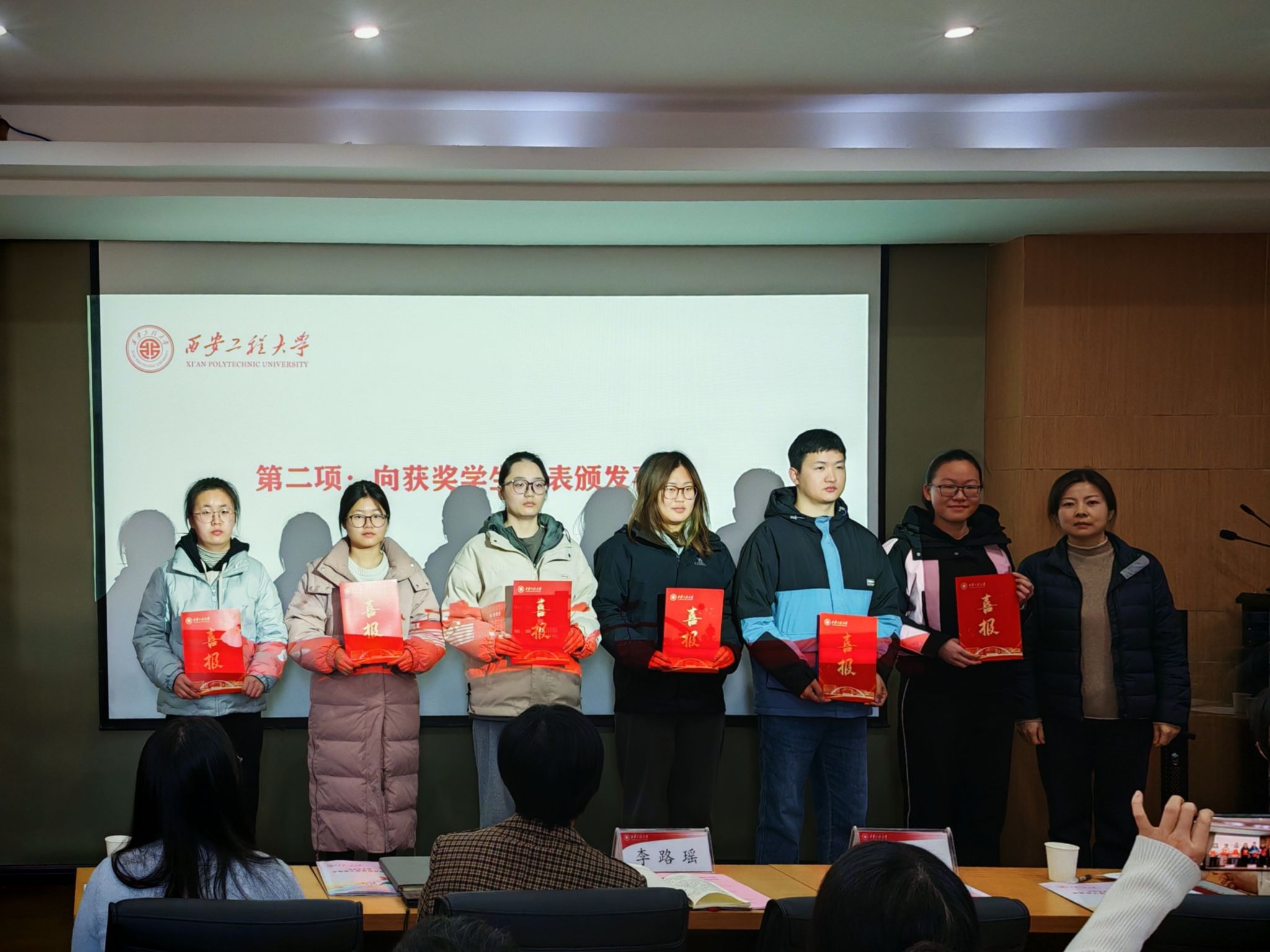 与会全体人员学习了国家主席习近平发表的二〇二五年新年贺词。纺织科学与工程学院杨小静、计算机科学学院曹志强纷纷表示深受鼓舞,激励自己在学业和未来奋勇向前,他们分享了学习收获,在面对困难时不断克服提升的经验,并向获奖学生发出了倡议,和大家一道珍惜荣誉,戒骄戒躁,刻苦努力,模范带头,积极传递正能量。李路瑶向国家奖学金获奖学生代表发放喜报。