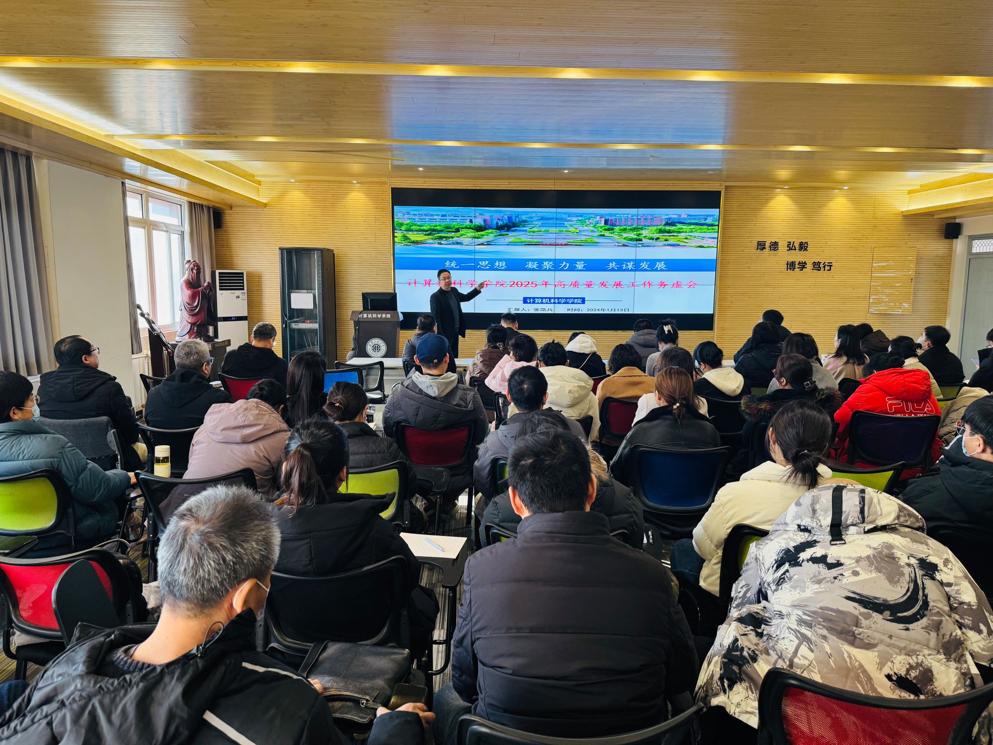 2025年1月13日,计算机科学学院召开主题为“统一思想、凝聚力量、共谋发展”的高质量发展工作务虚会,学院党政领导班子成员及全体教职工参加会议。