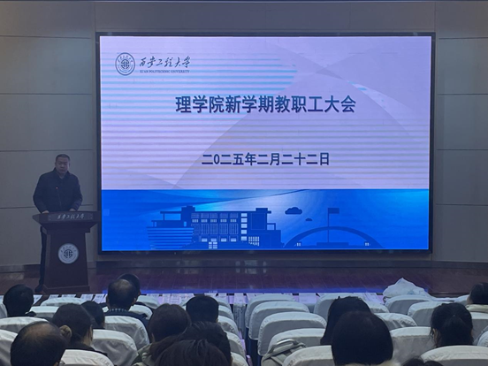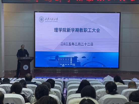 2月22日上午,理学院在金花校区西纺报告厅召开新学期全院教职工大会,安排部署新学期各项工作任务,保障开学平稳有序。会议由理学院党委副书记刘玉森主持。