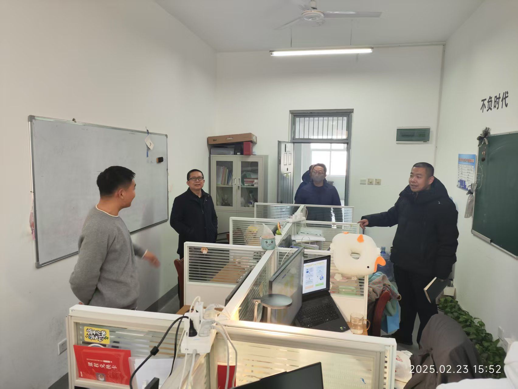 在研究生工作室,院领导着重检查了研究生工作室及研讨室设施配置、人员安排、用电线路和环境卫生等情况。现场询问了同学们的学习、生活和科研进展,鼓励大家务必保持积极向上的学习态度,勇于探索未知领域,确保科研工作的顺利进行。叮嘱大家平时注意用电安全、保持工作室和研讨室整洁,共同维护良好的科研环境。