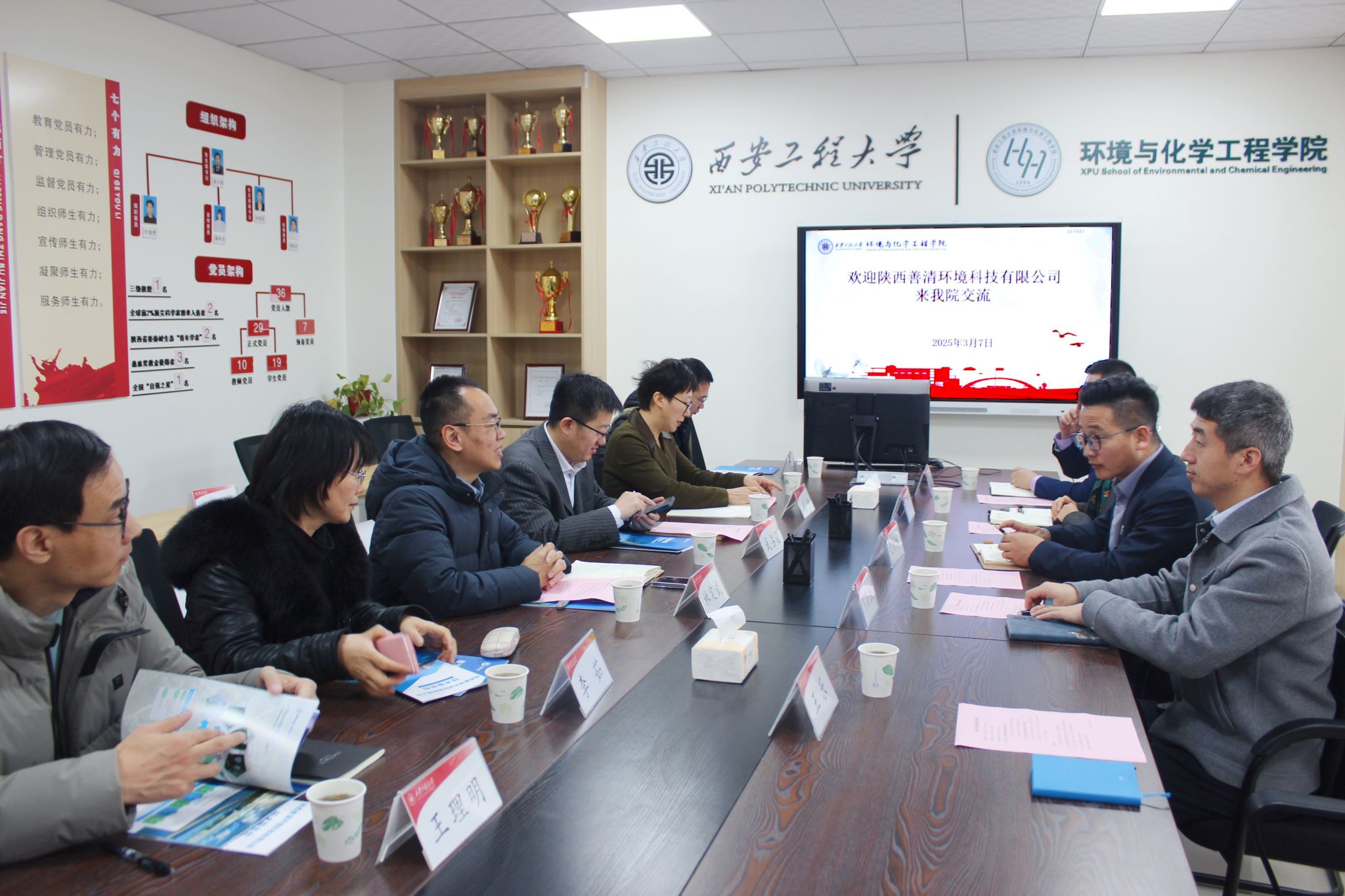 3月7日上午,陕西善清环境科技有限公司总经理毛新博,技术副总经理陈百恒,人力资源总监介晨,研发部经理赵明一行来环境与化学工程学院洽谈校企合作事宜。学院副院长(主持工作)武占省、副院长武峥、环境工程系系主任李茹等10余名教师参加了座谈会,座谈会由学院党委副书记林定武主持。