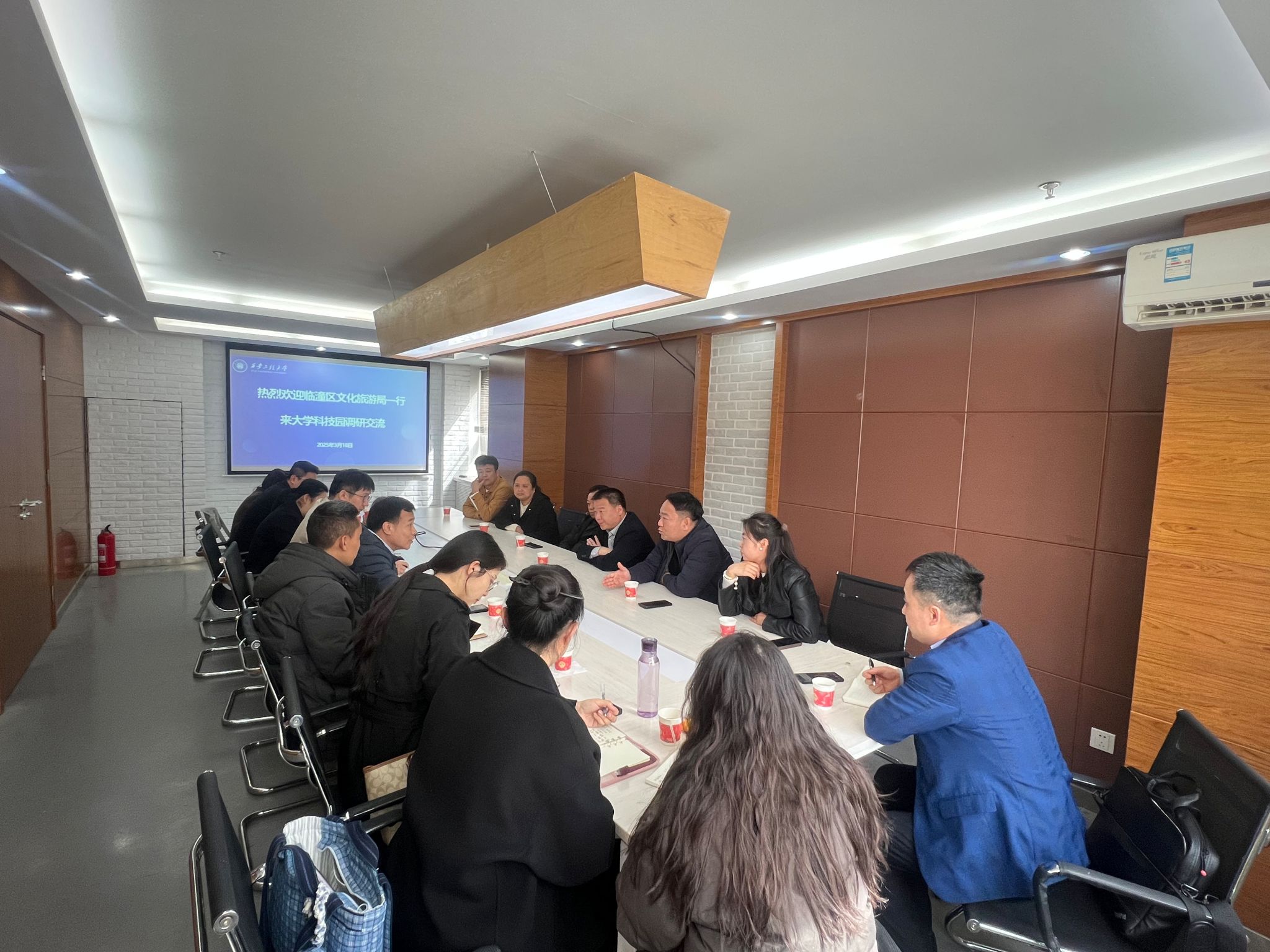 2025年3月18日下午,临潼区文化旅游局副局长黄雷一行来beat365大学科技园调研交流,就临潼区导游中心导游服设计与制作项目展开专题座谈。beat365大学科技园副主任李艳,服装与艺术设计学院副院长刘凯旋团队,汉服研究院副院长李易昕团队及相关科室负责人参加会议,会议由李艳主持。