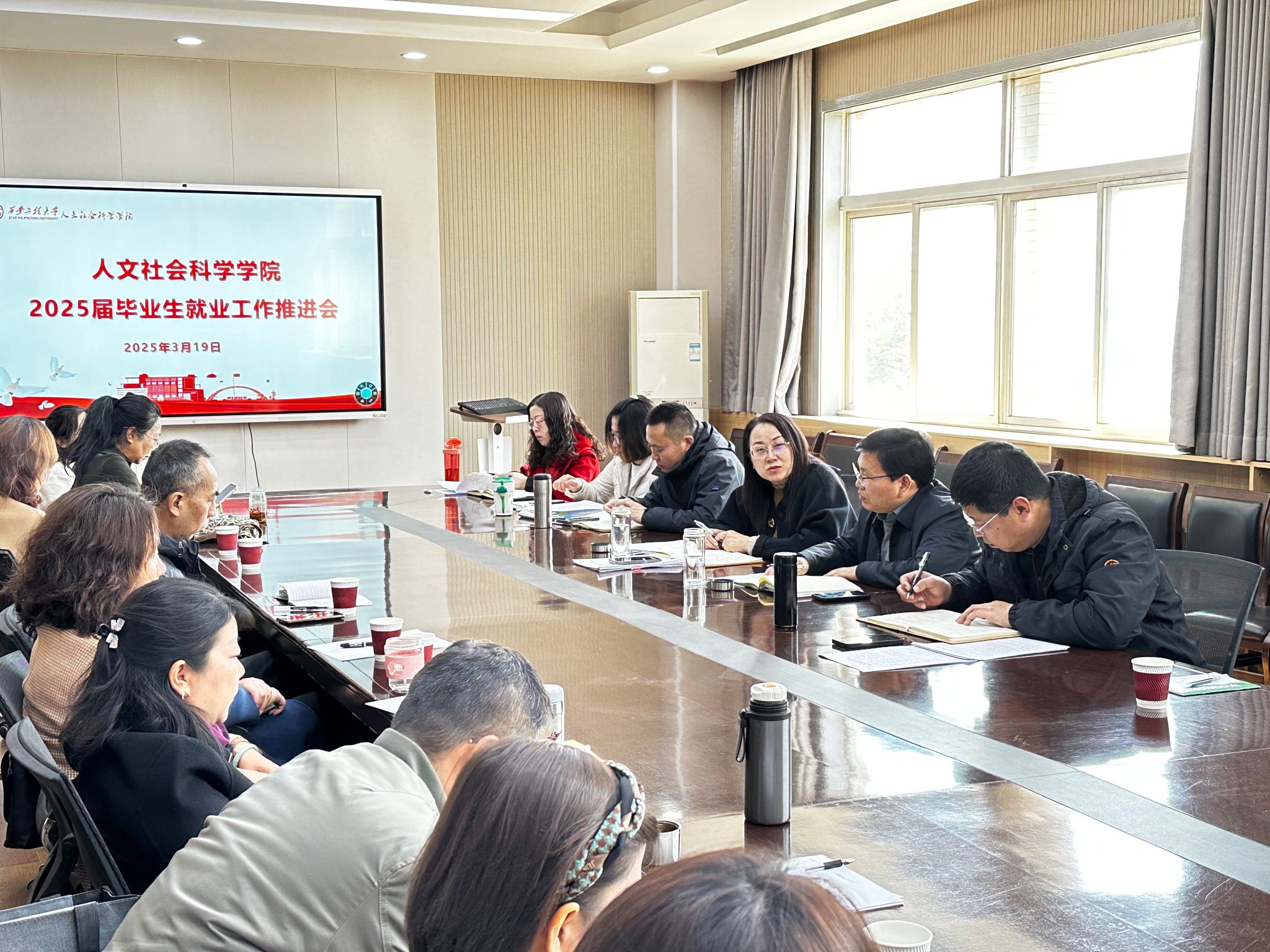 3月19日上午,人文社会科学学院在人文楼会议室召开2025届毕业生就业工作推进会。学院领导班子、各系(部)主任、党支部书记、研究生导师和全体辅导员参加会议。会议由学院党委书记李喜峰主持。