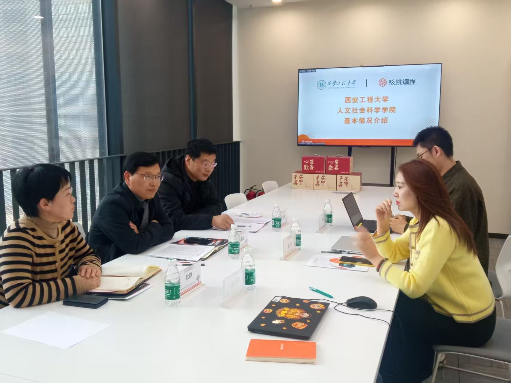 3月18日,人文社会科学学院党委书记李喜峰、副书记赵立涛、学生工作办公室主任杜静一行赴聪明核桃编程科技(西安)有限公司开展调研交流和访企拓岗专项行动。