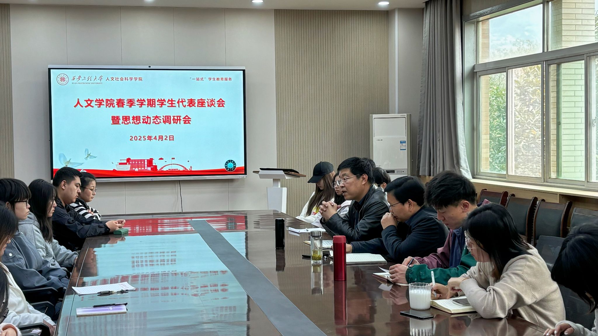 4月2日,人文社会科学学院在临潼校区召开春季学期学生代表座谈会暨思想动态调研会,围绕学生管理、教学服务、校园文化等内容展开深入交流,进一步推进“一站式”学生社区建设,切实提升教育管理服务水平,学院党委书记李喜峰、党委副书记赵立涛、相关辅导员及学生代表50余人参加会议。
