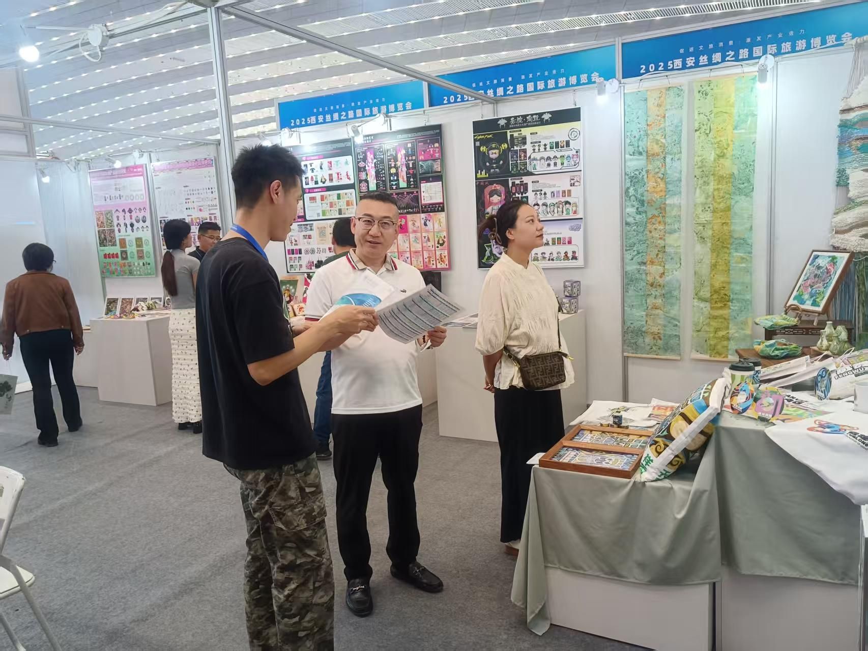 4月18日至20日,2025西安丝绸之路国际旅游博览会“一带一路”旅游城市发展交流活动在西安国际会展中心举行。beat365大学科技园牵头、服装与艺术设计学院筹备,学院师生携带10余组本硕学生原创作品参展,以“文化赋能丝路,创意点亮未来”为主题,通过多元艺术形式展现陕西地域文化与现代设计的创新融合,受到展会现场关注。