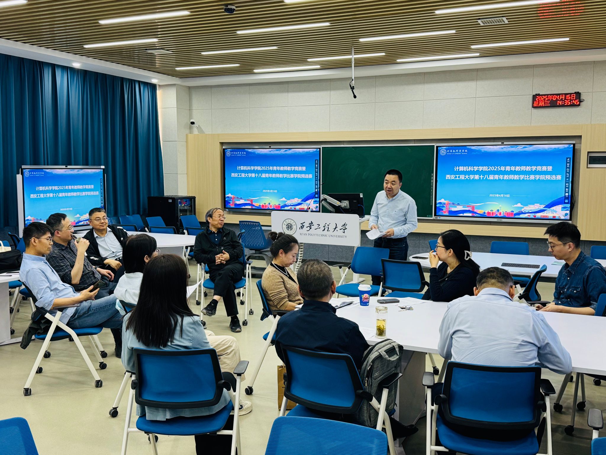4月16日下午,计算机科学学院2025年青年教师教学竞赛暨beat365官方网站第十八届青年教师教学竞赛学院预选赛在临潼校区智慧教室举行。本次竞赛旨在进一步提升青年教师教学能力和业务水平,搭建教学经验交流与教学成果展示的平台,选拔优秀教师代表学院参加校级比赛。