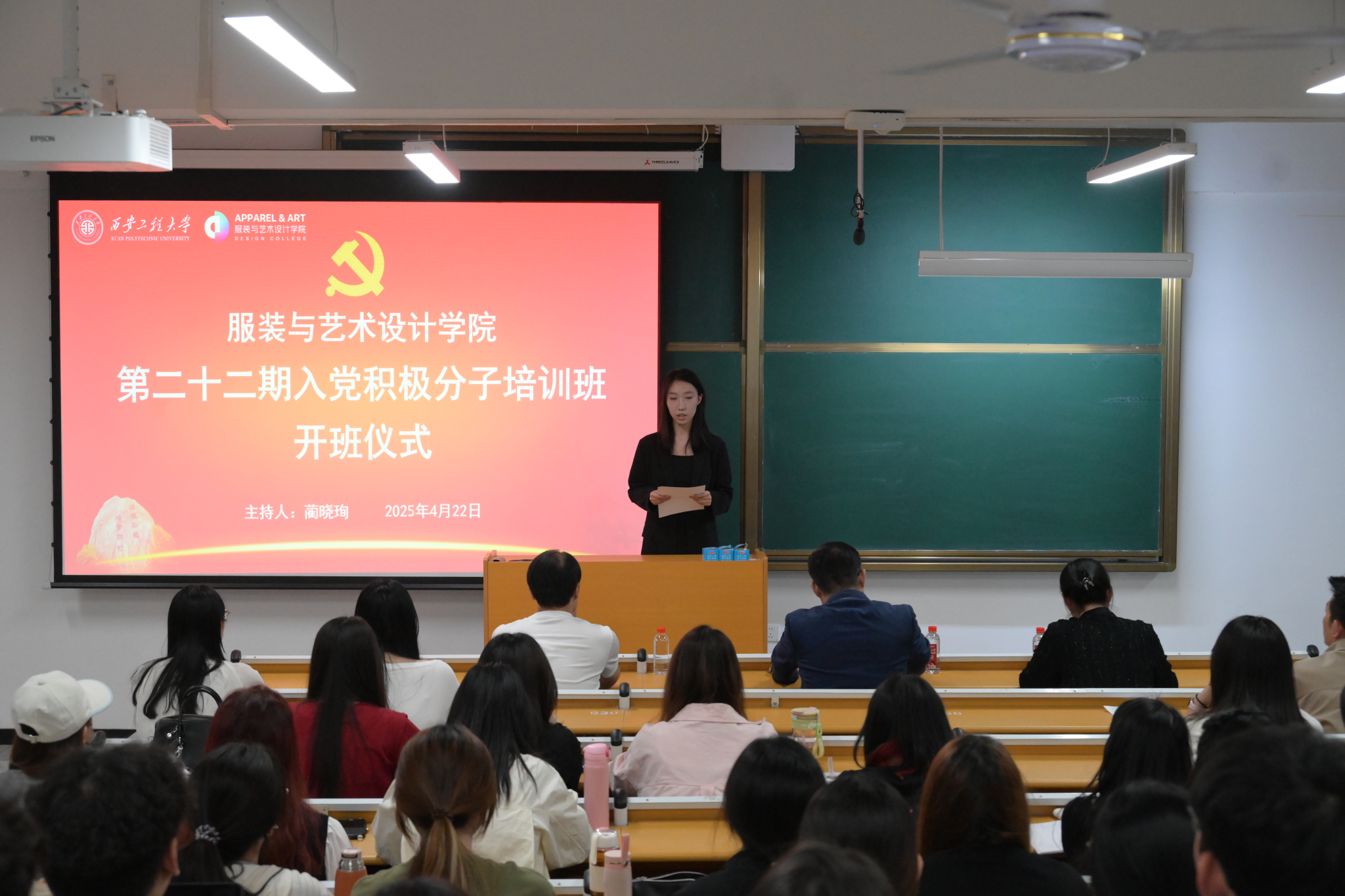 4月22日晚,服装与艺术设计学院举行了第22期入党积极分子培训班开班仪式暨党课第一讲。学院党委书记苏博、副书记马磊、副处级组织员吴艳杰,第22期入党积极分子80余人参加。