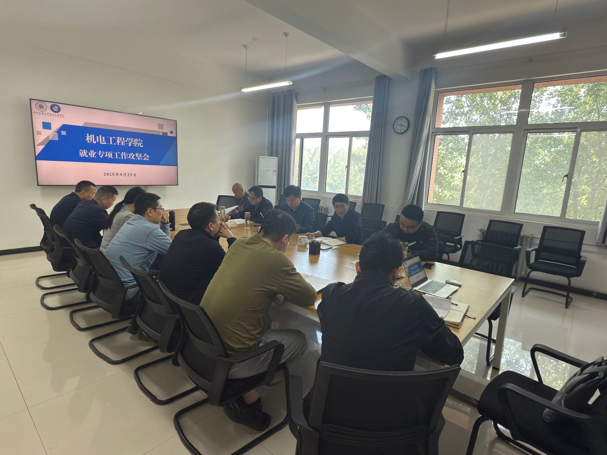 4月23日,机电工程学院召开就业专项工作攻坚会,学院全体班子成员、教研室主任、就业辅导员和毕业班辅导员参加了会议。会议由学院党委书记阚佩主持。