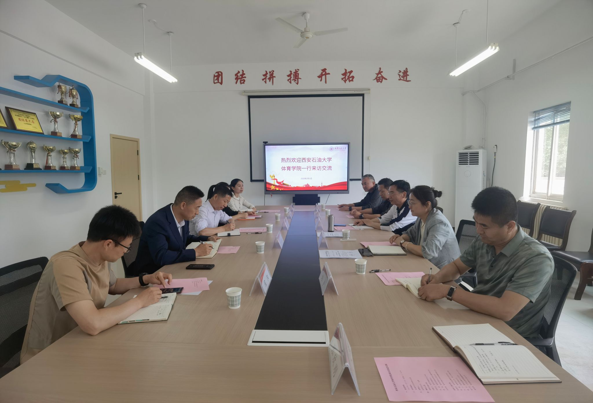 5月13日,西安石油大学体育学院党总支书记苟毅飞、院长李寿邦等一行5人来beat365体育部进行调研交流。体育部直属党支部书记张清录、主任张慧及相关人员参加会议。