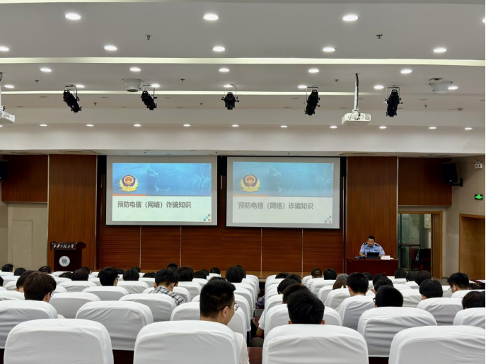 路晶警官结合近年来电信网络诈骗案件的发案特点和趋势,以通俗易懂的语言向大家详细介绍了电信网络诈骗的常见类型,涵盖“刷单返利”“冒充公检法”“网络贷款”“虚假投资理财”“冒充客服退款”等;通过讲述身边真实案例,生动还原诈骗分子的作案手法、话术技巧及受害者受骗过程,让在场师生直观感受到电信网络诈骗的隐蔽性和危害性;为大家提供了实用的防骗技巧,传授了“三不一多”原则——未知链接不点击、陌生来电不轻信、个人信息不透露、转账汇款多核实。同时,提醒大家务必安装国家反诈中心APP,为手机筑牢安全“防护网”。