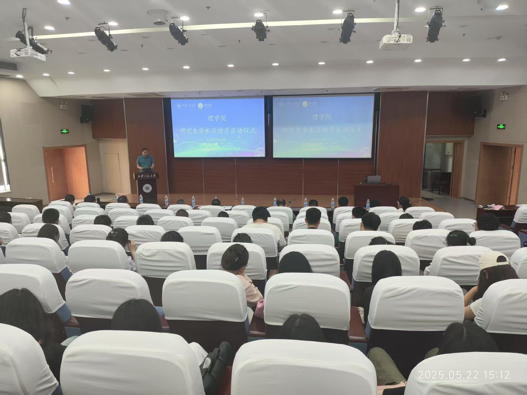 5月22日,理学院在临潼校区举行2025年“研究生学术活动月”启动仪式。学院党政领导及各学科主任、导师代表、研究生秘书、研究生辅导员以及研究生代表共计200余人参加了本次活动,仪式由学院副院长冯进钤主持。