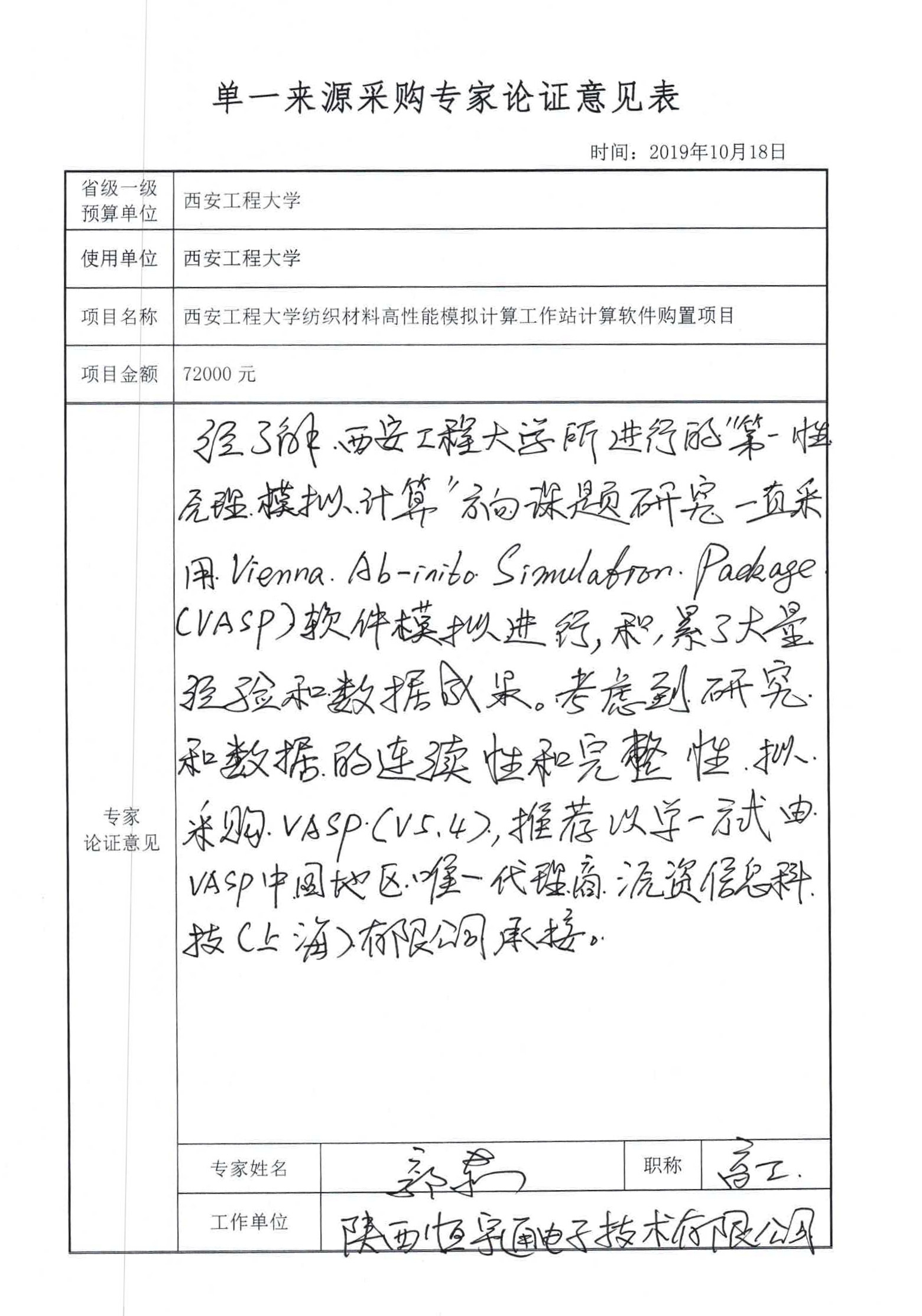 由beat365官方网站纺织科学与工程学院申请的beat365官方网站纺织材料高性能模拟计算工作站计算软件购置项目,因申请人在前期项目课题研究采用Vienna Ab-inito Simulation Package(以下简称“VASP”)软件进行计算模拟研究,考虑科研项目数据和成果的延续性、完整性及研究方法的更多使用功能,由VASP软件经销商Materials Design, Inc.在中国地区唯一独家代理商源资信息科技(上海)有限公司提供该软件的采购和售后服务,拟采取单一来源采购方式采购。现将有关情况向潜在供应商广泛征求意见。征求意见期限从2019年10月22日起至2019年10月29日止。